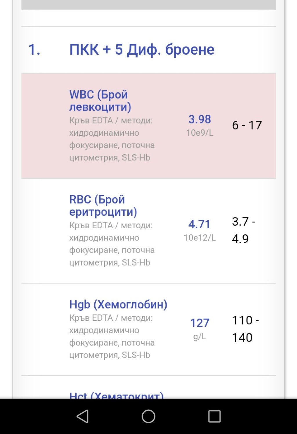Здравейте, д-р Митева! Много съм притеснена и моля за вашето мнение! Синът ми на 3г и 10 м. от събота е с температура до 39.3 градуса. След прием на температуропонижаващи спада и след няколко часа се покачва отново. Няма др. симптоми като хрема или кашлица. Вчера пуснахме кръвни изследвания и нивото на левкоцити е мн ниско - 2.38,при долна граница 4. Днес пуснахме отново изследвания в др. лаборатория, но левкоцитите отново са ниски. Според педиатъра е вирусна инфекция и затова са ниски левкоцитите. Ще повторим изследванията след 5 дни. Вие какво смятате, може ли да е вирус, без др симптоми и дали може това да е причина за левкоцитите. Много се притеснявам да не се касае за сериозна и страшна болест. Прикачвам файл с изследванията