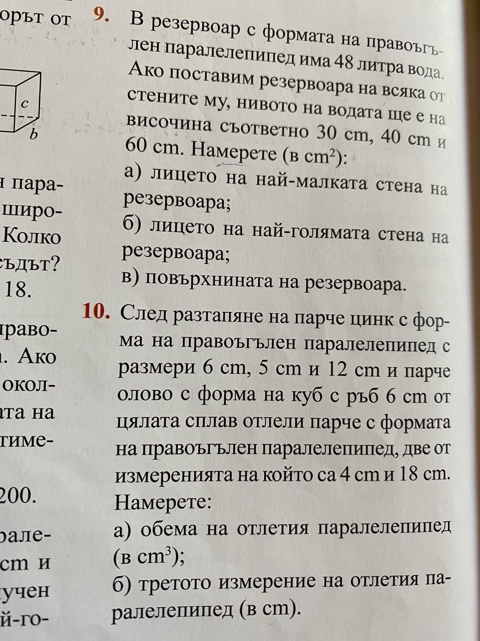 Текста най-долу “отлетия поралелепипед в см.”