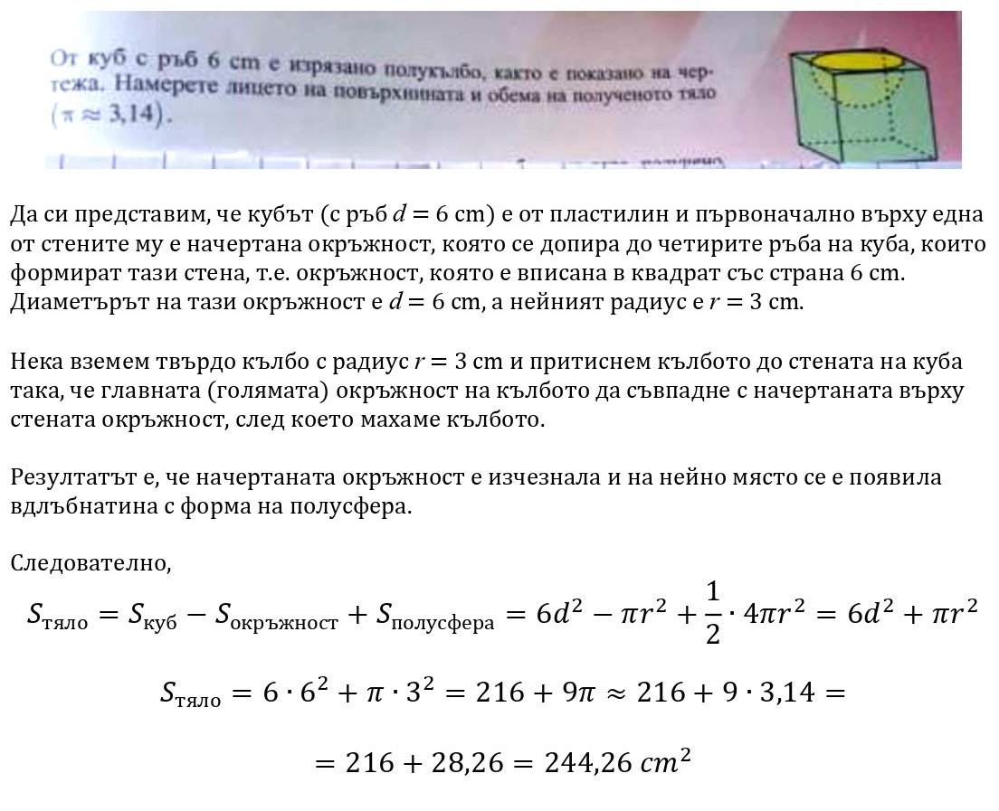 Повърхнина на новото тяло - 216-56.52=159.48cm^2