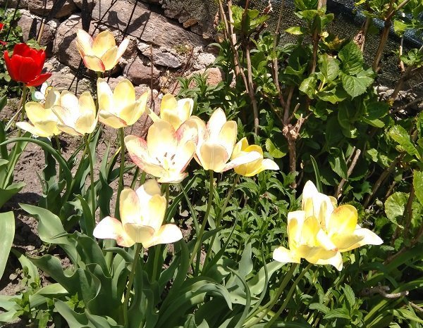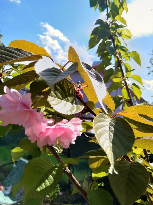 За празника се отвориха цветчета на японската вишна Канзан, само две на брой. Разбрах го от съседката ))). Цъфнаха жълто-розовите лалета, посадих подарената гигантска теменужка и, ураааа, намерих три от миналогодишни хости на странни места и ги пресадих. Надявам се и другите да се появят.