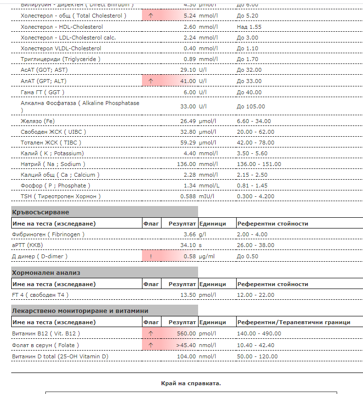 Така, при мен излязоха резултатите и като гледам еозонофилите, лошо ми става. И от фраксито, и от клексана ми стават бучки в корема и явно е някаква алергия. В листовката им пише, че като страничен ефект може да има покачване на еозинофилите. При първото изследване януари месец те са били 2.21%, сега са 12.2%. Другото, което ме притесни, са резултатите за ТСХ и ФТ4.