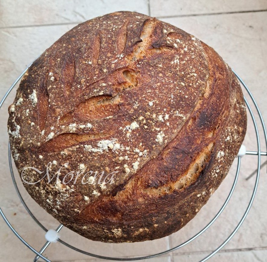 ...100% хидратирана закваска - 50 гр. сух квас от майката, активиран с 50 гр. брашно и 50 гр. вода. Грамажа е примерен, важното е всички части да равни.