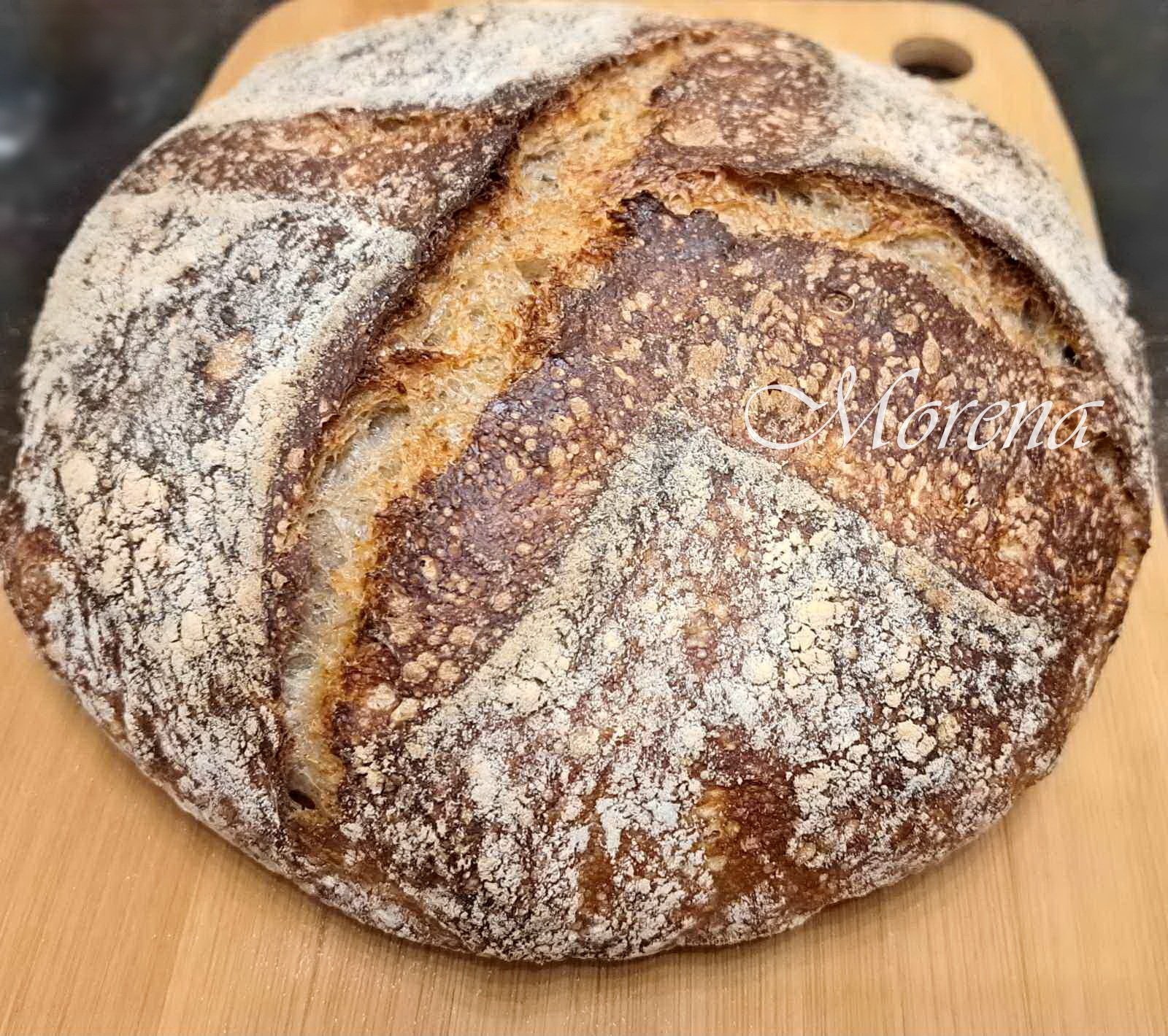 За първи път пробвах slap&fold. Според мен този метод е повече за бели хлябове? 🤔 После по настояване на ММ оставих да втасва направо в съда за печене, изцяло на стайна температура, защото не е топло, и пекох същия ден вечерта. Добре се надигна и опече.