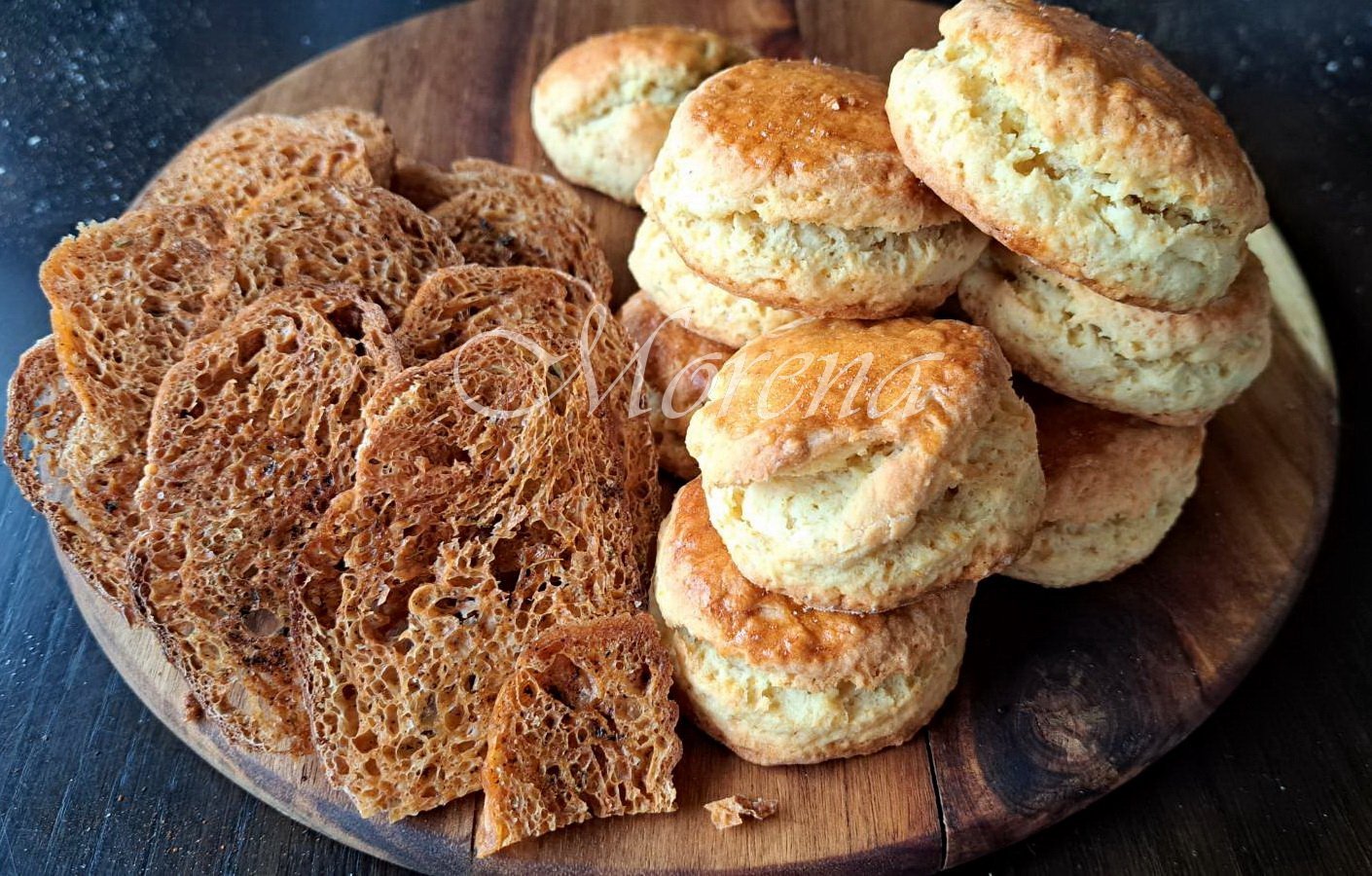 И днешната закуска - Любими портокалови скони, за първи път с квас (остатъчен) и брускеНи Морени. 🙂  Приготвени  с любов, не е търсен ефект! 🙂  И да ползвам фурната от сконите, тръгнах да препека едно останало крайче хляб на сухар, ама рекох да изрежа тъничко изсъхналото и те така,  станаха брускеНи. 🙂