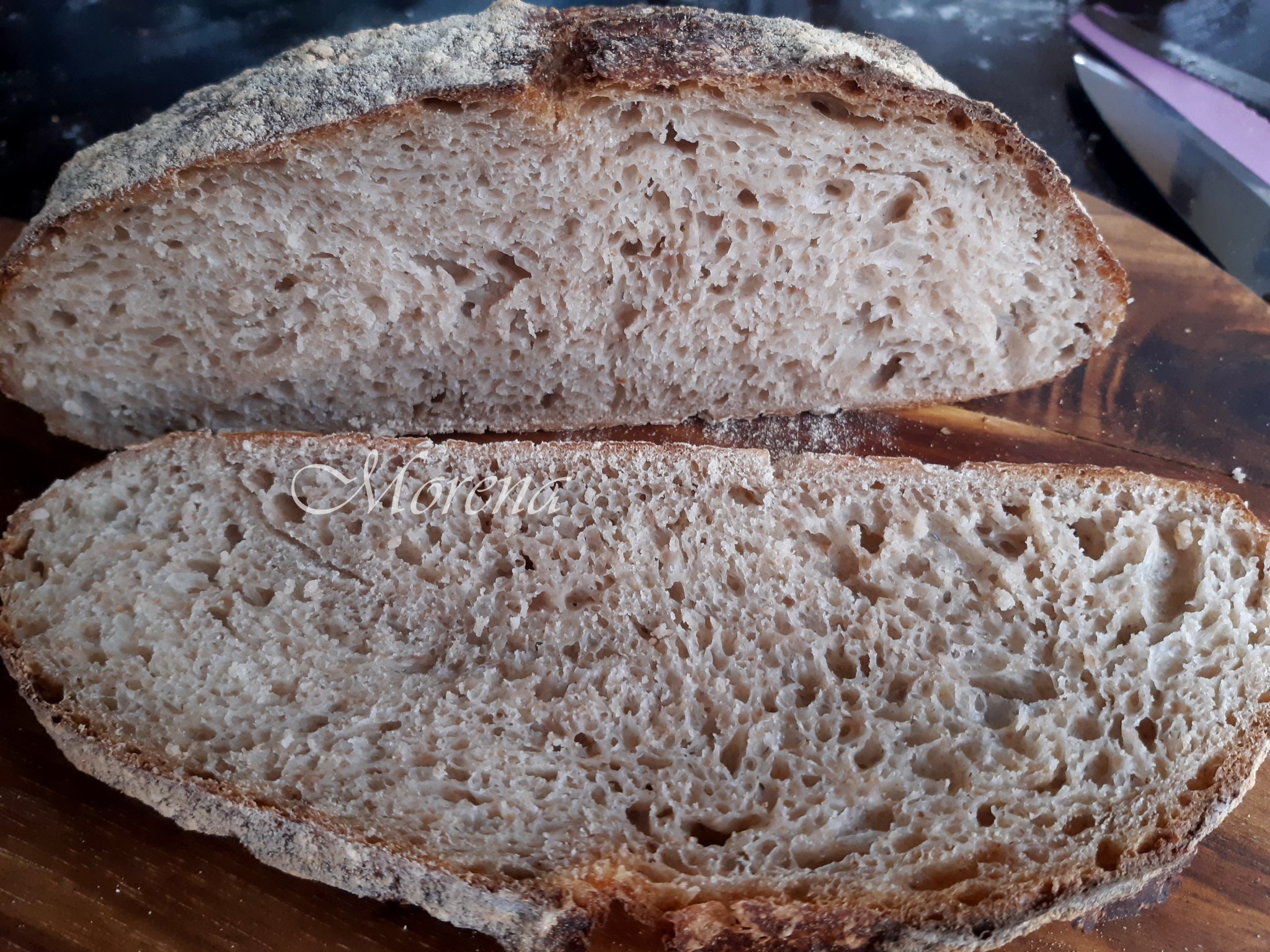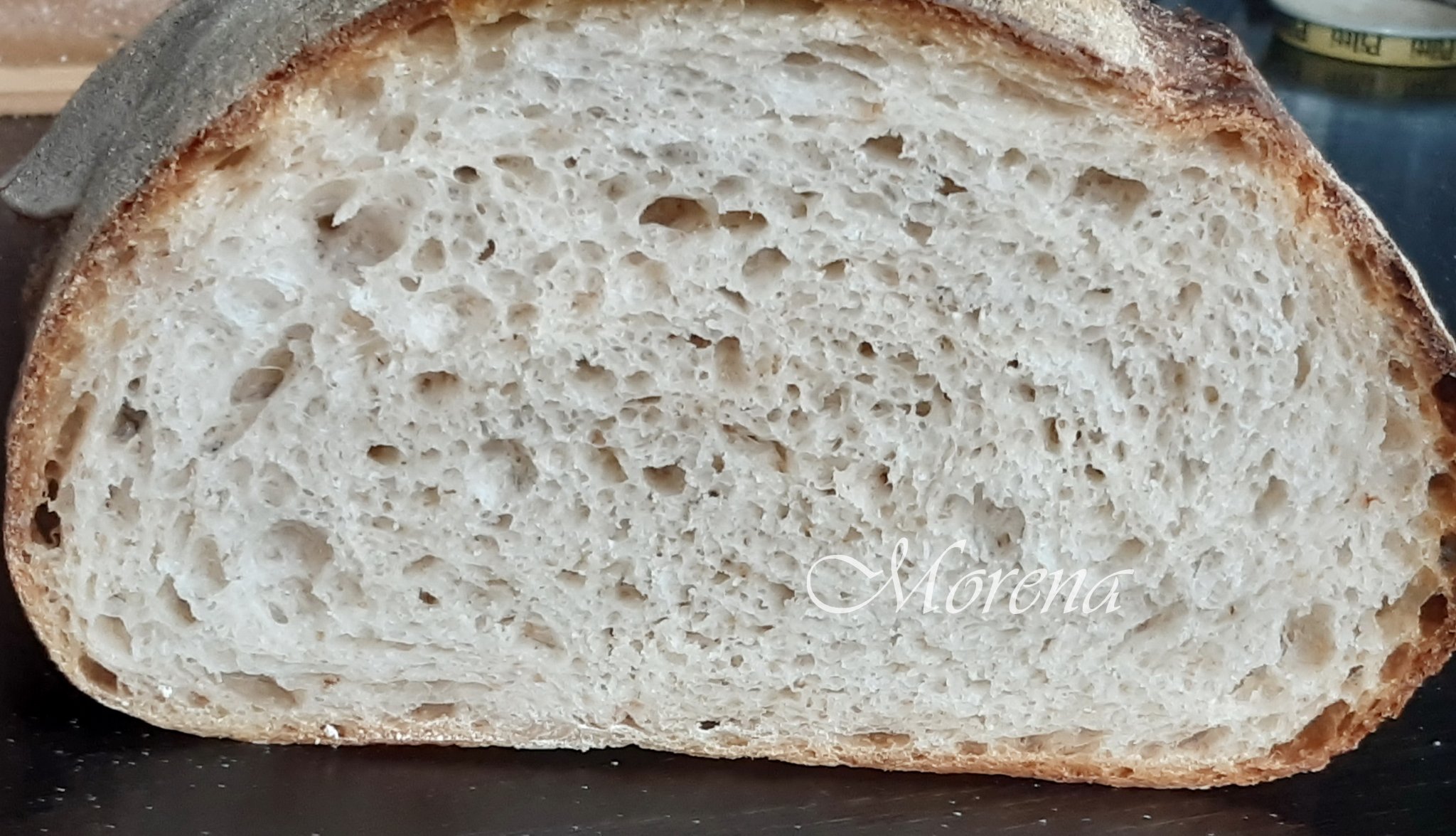 И аз слагам най-голяма част пълнозърнеста спелта. Днес опекох такъв. Другите брашна бяха пълнозърнесто ръжено и малко бяло от лимец. На 600 г брашно - 420 г вода за автолиза, квасът (ръжен) беше близо 200 г.