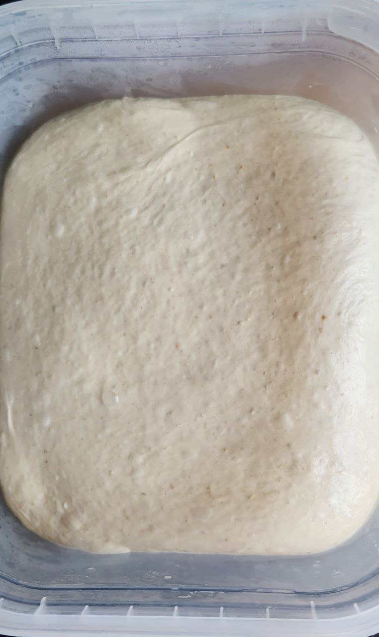 Това е тестото за пица!!!! Smiley Най -накрая го открих. Според мен е малко по- меко и леко ме затрудни, но ще си поиграя, я с грамажа на брашното, я с хидратацията на стартера за да се получи каквото аз искам тесто за работа.