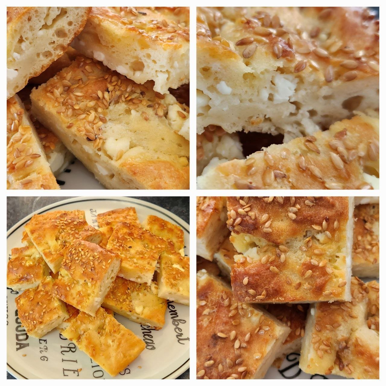 В купа се разбиват яйцата, киселото мляко, квасът, содата, бакпулвера, солта и олиото. Добавя се брашното и се разбърква. Сместа се получава гъста. Добавя се натрошеното сирене и се разбърква.