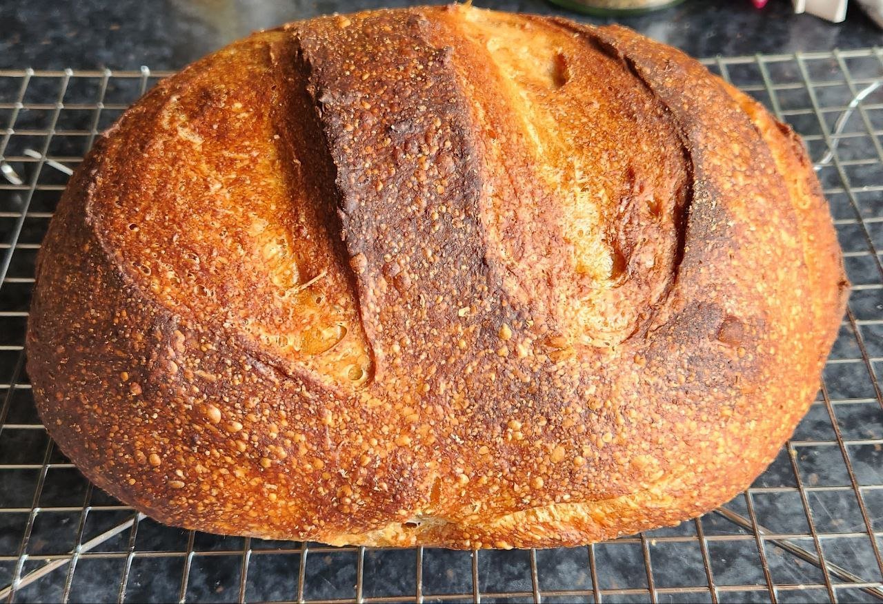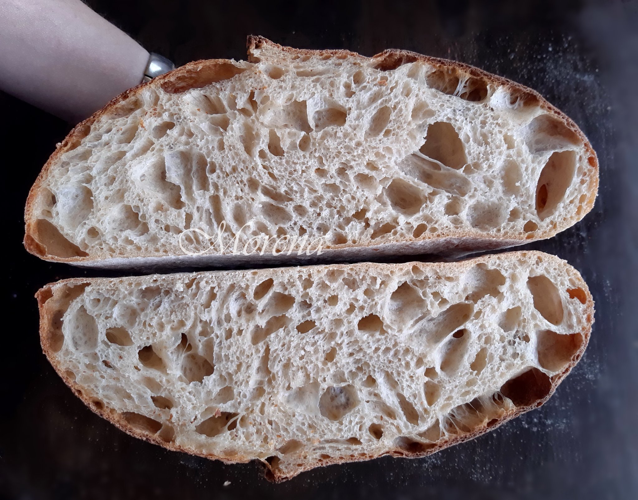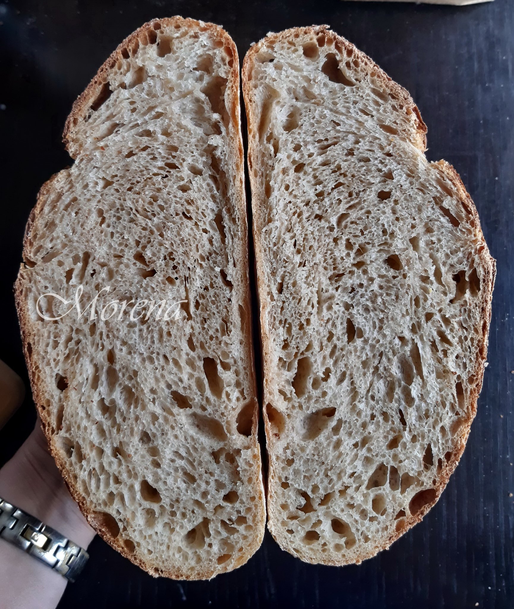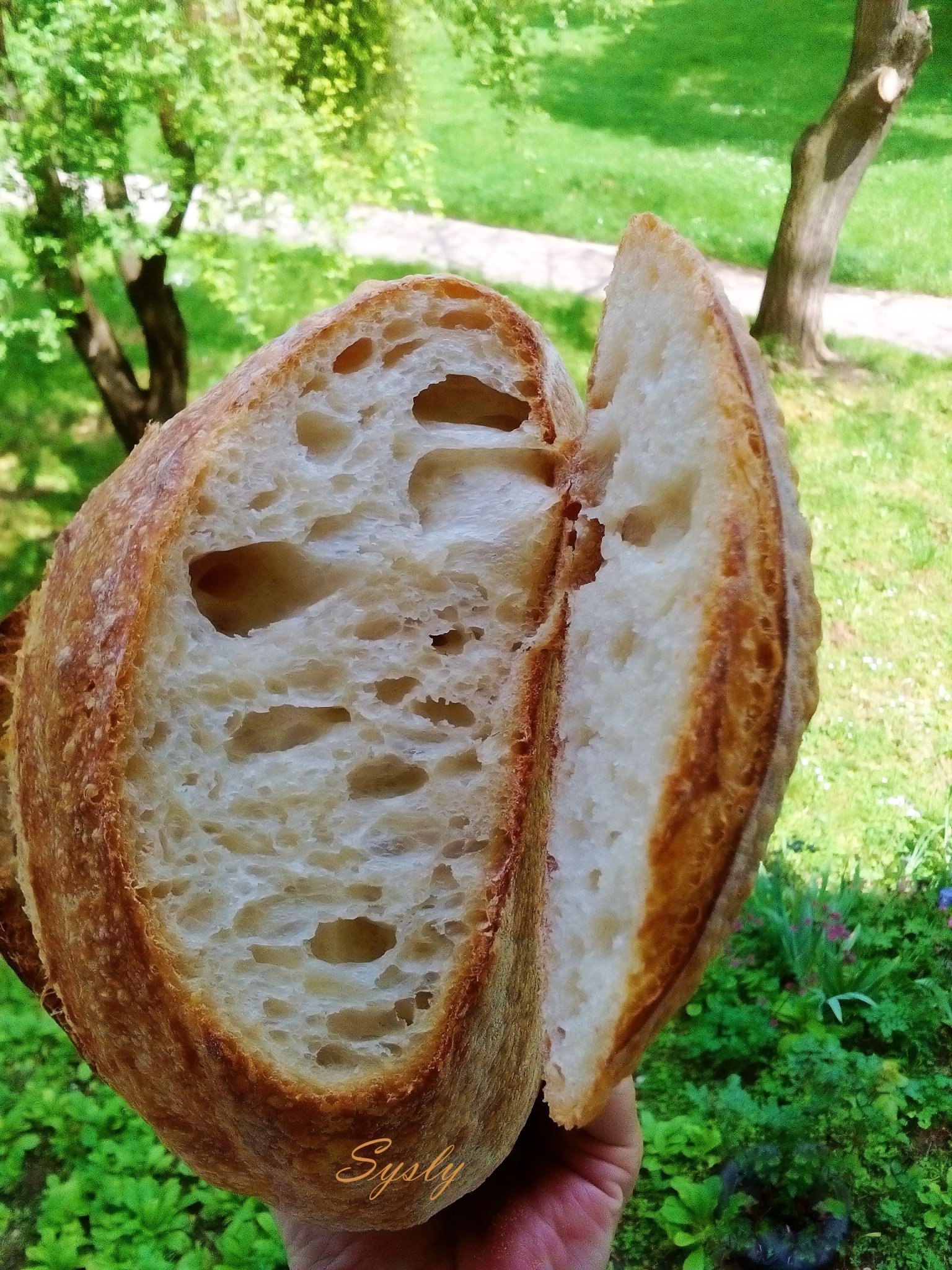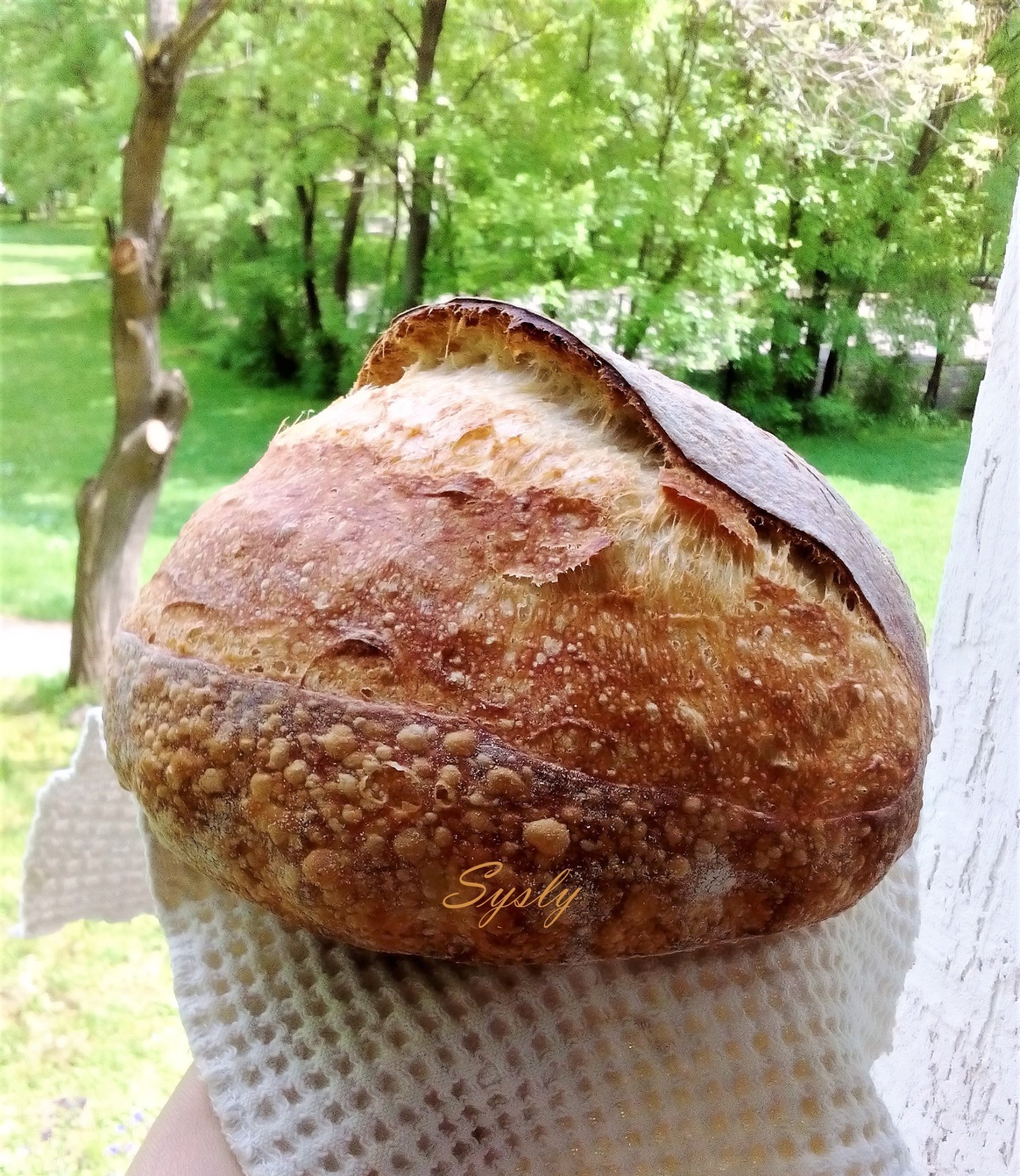 Аз приготвих хляб в рамките на един пълен ден. Получи се много вкусен, съвсем малко го бях попрепекла. Забелязвам, че квасът ми е доста по-силен от зимата, и тестото ватсва по-бързо. Сега ми е в хладилника, защото в следващите 10 дни няма да правя хляб, но се надявам да е със същата сила след това.