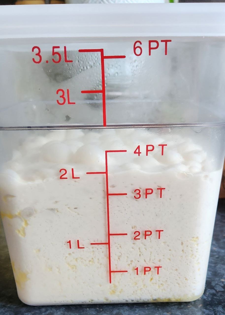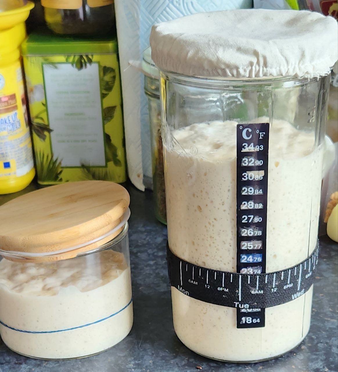 Дани, голям, малък, важното е честичко да меся Simple Smile  Аз гледам по-пресен да го ядем, та вчера - половината, днес - другата половина, така аз днес меся и утре сутрин ще пека.   Ще се предизвикам обаче като го оставя нощес на балкона (за по-кратко разбира се), вместо в хладилника.  На 4 градуса в него повечко време му трябва, а не искам толкова дълга ретардация. Захраних КМ и заквската  и не толкова ранния слаедобяд ще действам. Като видя че подминава удвояването на закваската - забърквам Автолизата и чакаме и двете пика. Simple Smile
