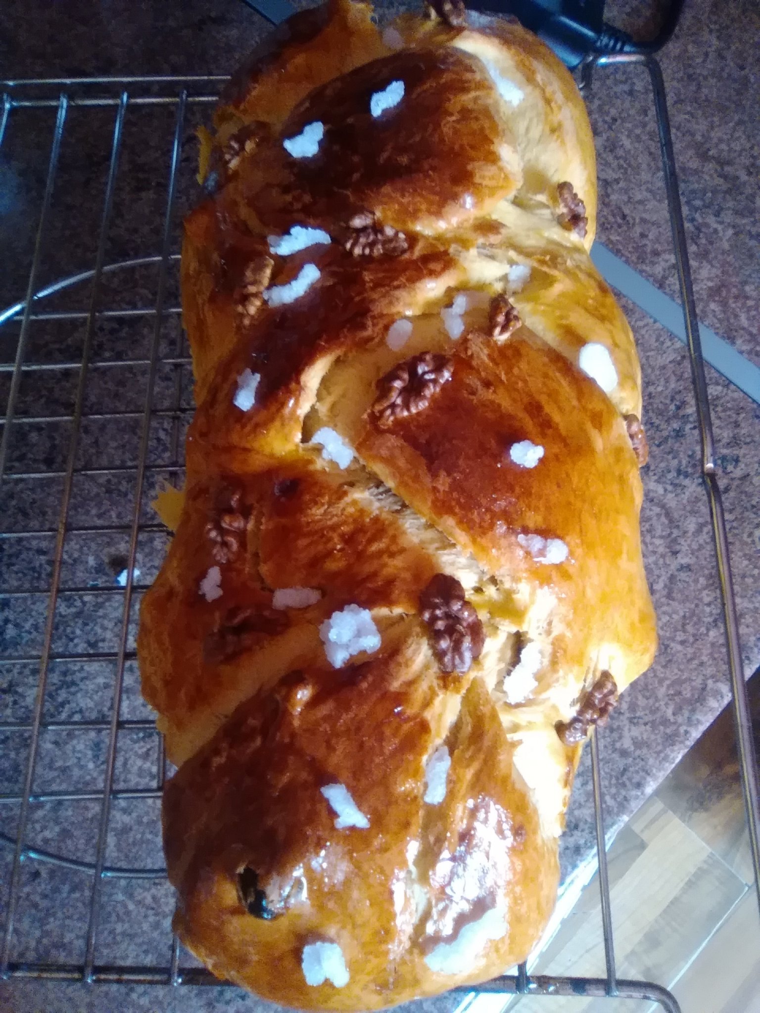 Втасвах в хладилника. Твоят козунак с кокосово мляко и кокосово мляко. За първи път ползвам био пшенично брашно и нямах големи очаквания, но се получиха много вкусни.