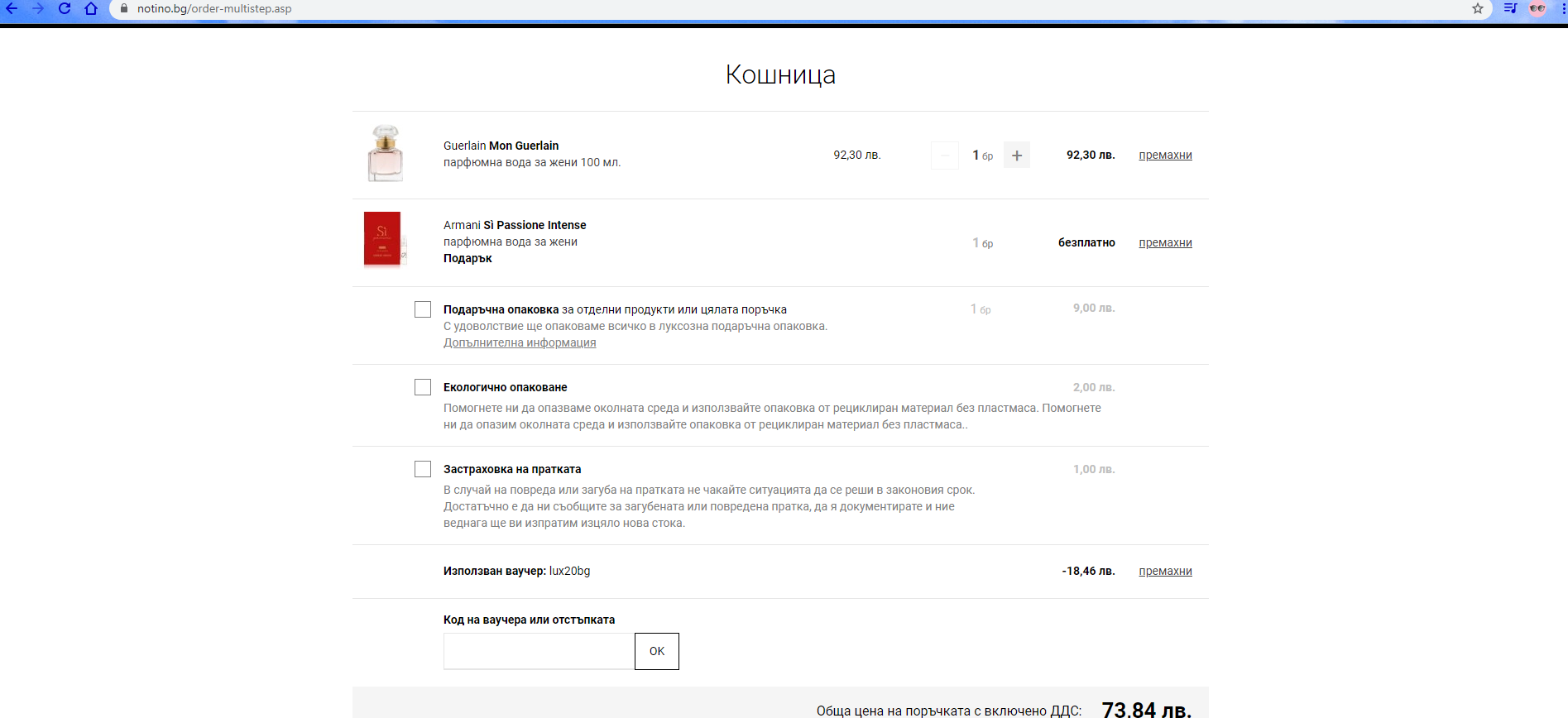В Нотино днес Mon Guerlain 100 ml излиза 73 лв.
