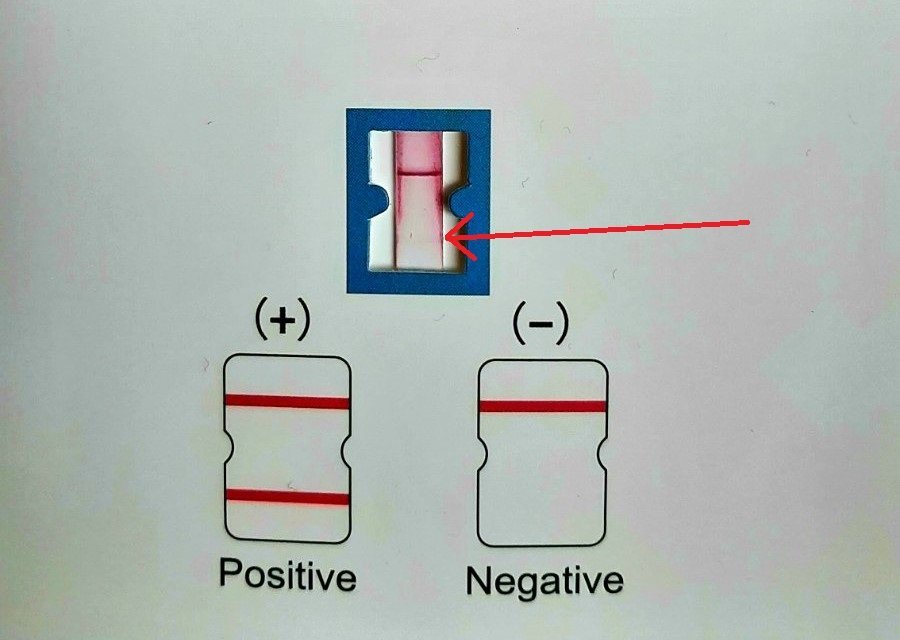 Има действително лека сянка, което според мен значи все пак положителен тест. Аз си мисля, че просто е още рано  и това е причината да не се появи ярка черта - няма достатъчно количество вирус в носоглътката все още. След няколко дни (ако прояви и симптоми) мисля, че вече ще е ярка чертата. Но и някой друг по запознат е добре да каже.