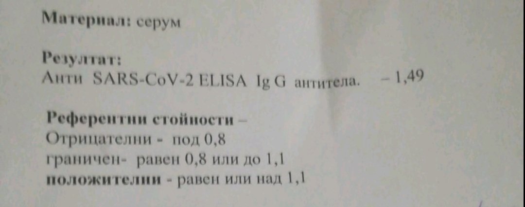 Аз правих същия тест този месец, имам 2 единици резултат. Ковид , доказан с ПСР преди повече от 4 месеца.