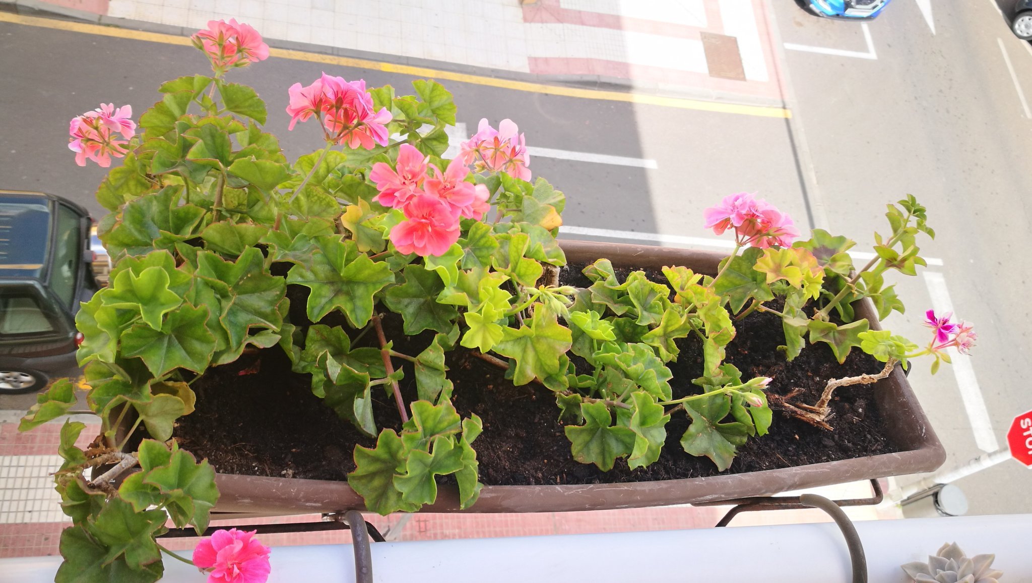 Месечинка виторога, мисля, че всички са се хванали, всички имат нови листа. Но никое не е парниково, двете са ми от съседката, останалите от баща ми. Гледам мушкатото на съседката, отрупано е с цвят, разкошно е. Горките ми цветя в градината, удави ги този дъжд.
