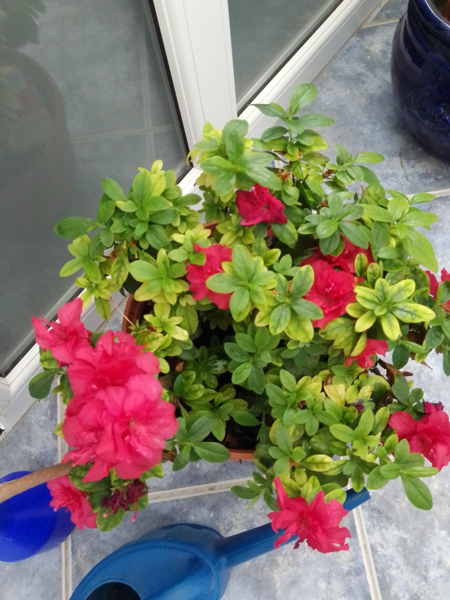 Азалия, рододендрон (така и не знам има ли разлика). Аз не се спогаждам с тях, три съм уморила дотук Embarassed Иначе са много красиви наистина.