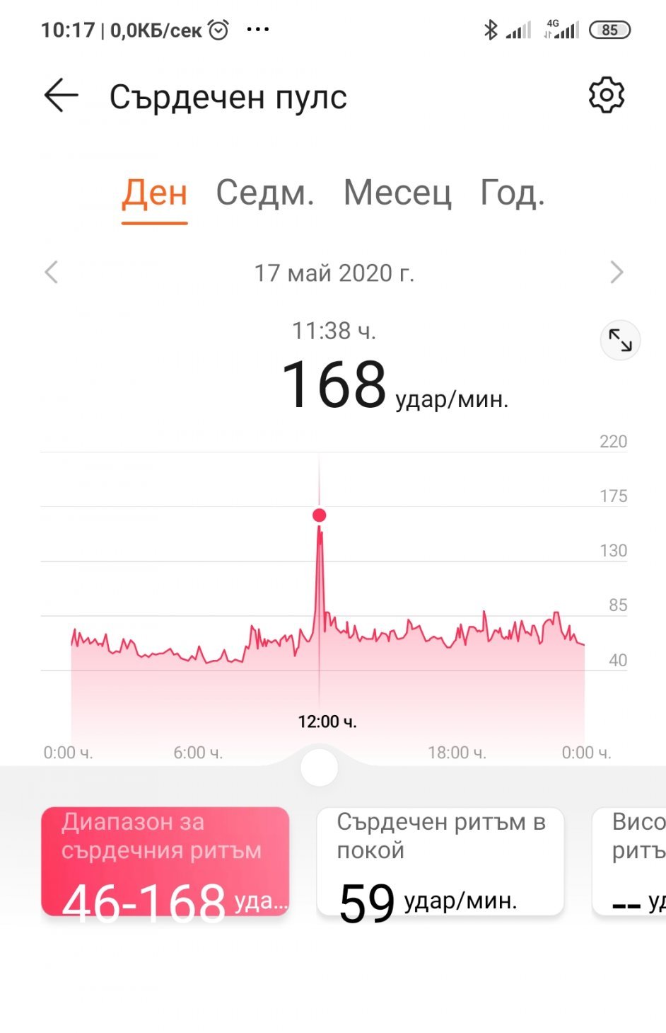 Тръгваш по опасния склон надолу. Слушай лекаря, пулса ти е ОК! Прикачам ти един мой ден с тренировка как изглежда скалата, минимална и максимална стойност за деня. И средна. Послушай лекаря спри само тритико. Ще влезеш в по голям цикъл.