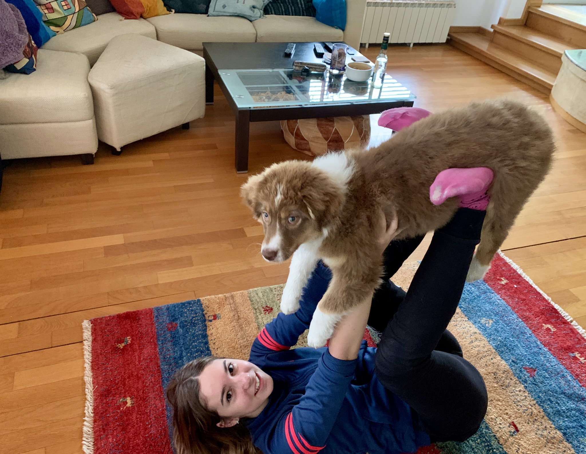 Снощи нещо й стана-забиваше глава в една възглавница на дивана,ръмжи,нервна,тича напред-назад.Да идва 10.05,да слагаме ваксината и после да може да излиза,че и нея вече не я свърта на едно място.Играем с нея, имат си тренировки с щерката,но не е достатъчно.Иска си навън животинката.
