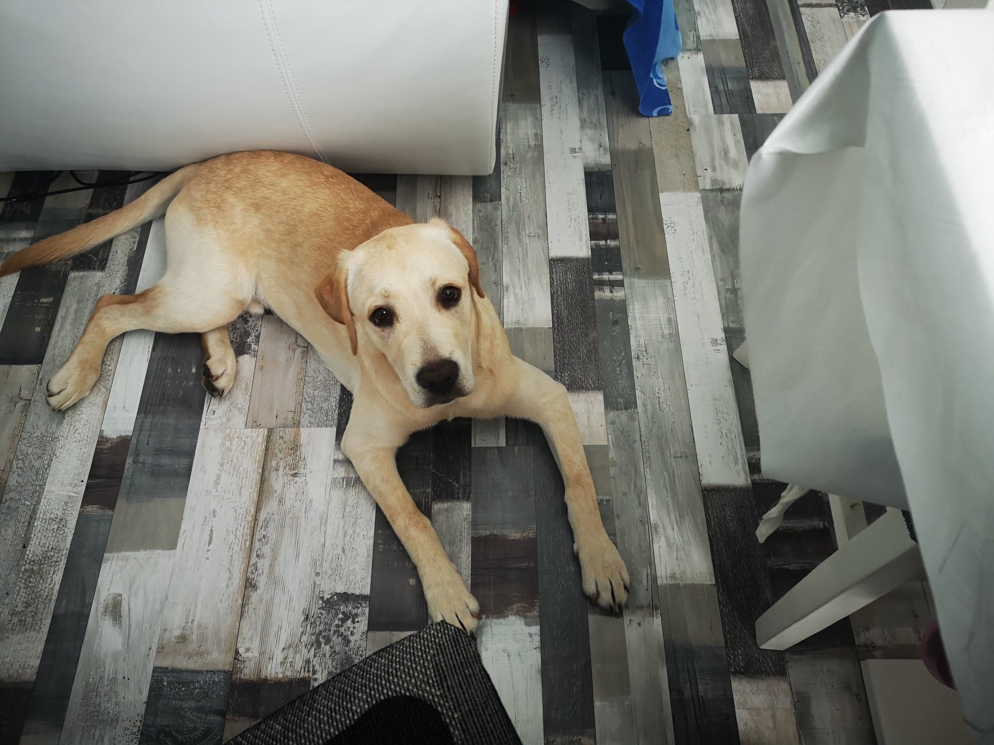 В момента обядвам, ето го Бейли, кротко чака, на 6 месеца става тези дни