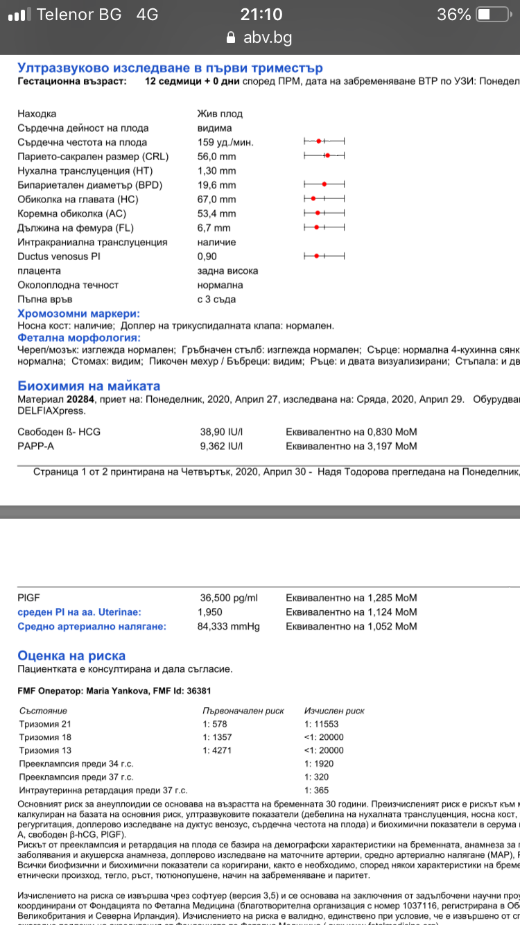 Момичета и моя БХС излезе, но не виждам вероятностите за болест на Търнър и триплоидия немоларна. На пръв поглед ме притесняват тези резултати. Вие как мислите?