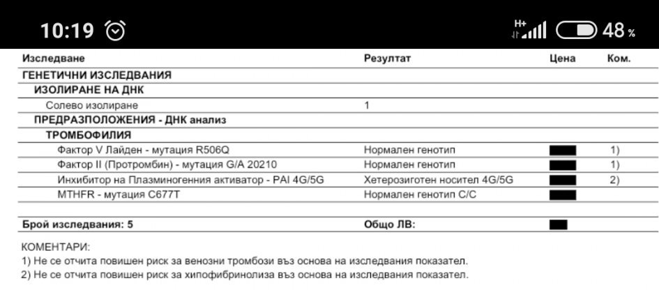 Какви са резултатите от изследването на тромбофилията и как се интерпретират тези резултати?