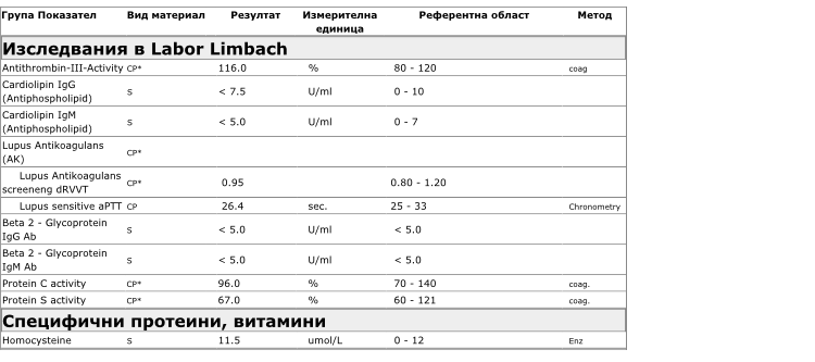 Какви са резултатите от изследването на тромбофилията и как се интерпретират тези резултати?