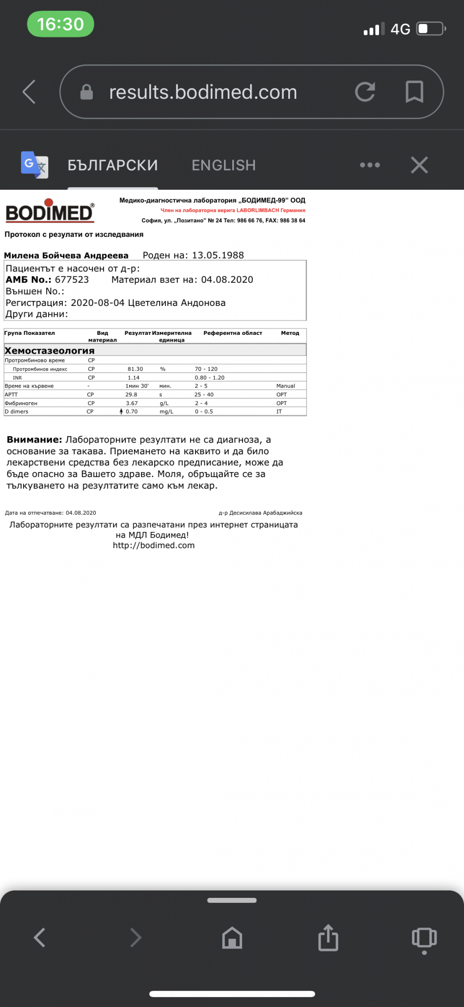 Момичета, днес си пуснах хемостазеология и резултатите са следните: