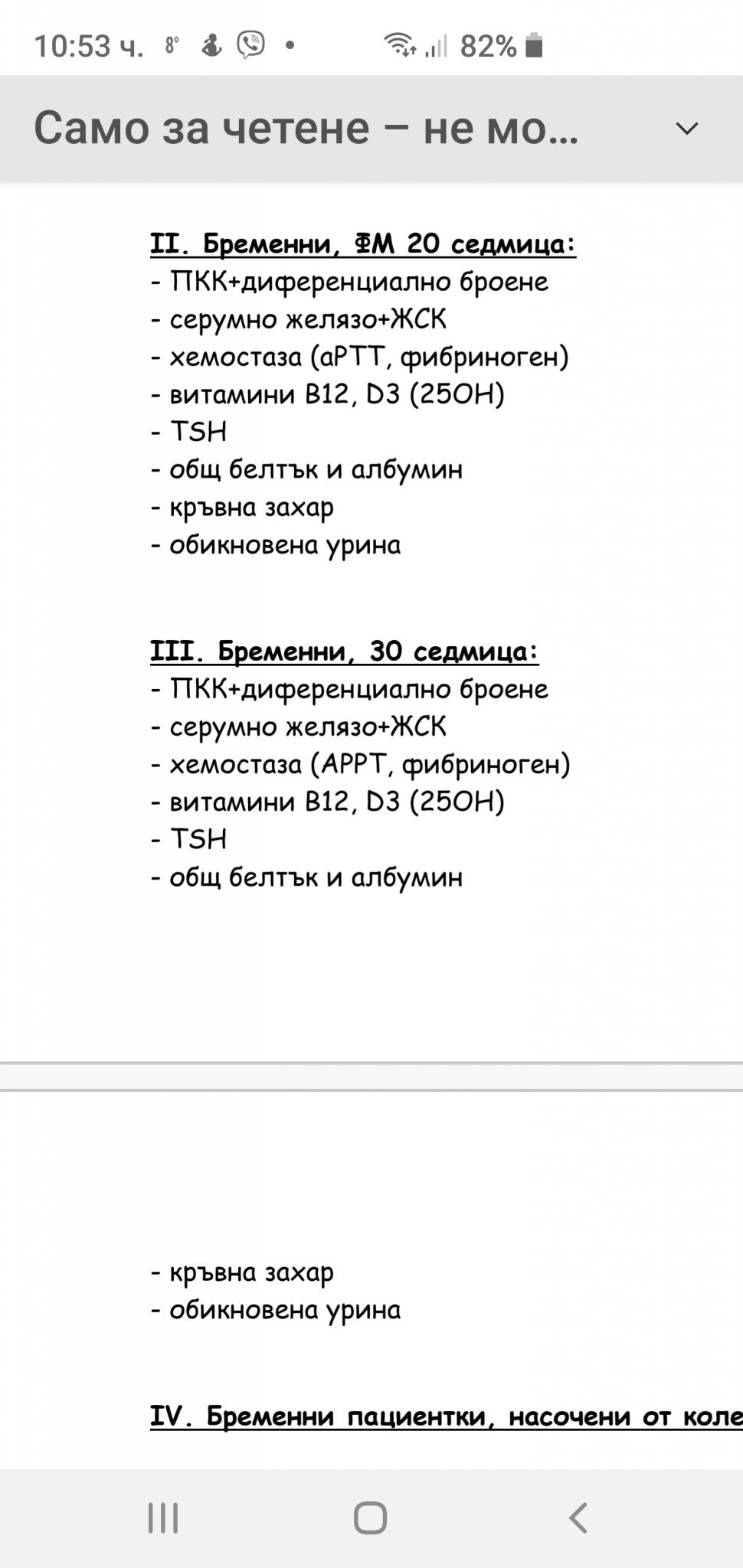 Момичета, извинявайте, че повтарям изследвянията, които сте написали, но имам скрийншот на това, което беше като прикачен файл за изследвания на страницата във ФБ и което незнайно защо изчезна.