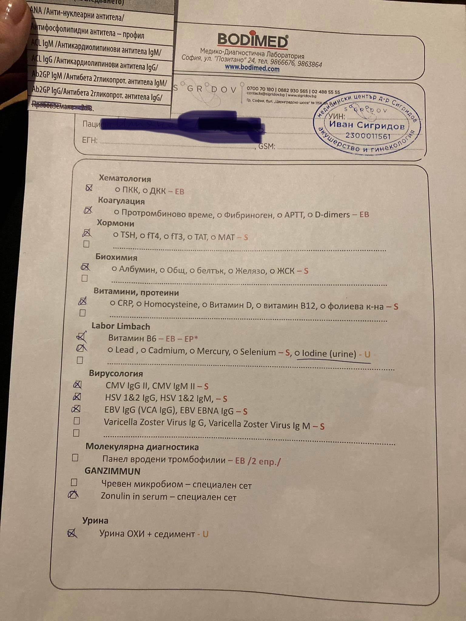 Аз днес дадох 400 и отгоре лв за тези изследвания , които иска да види, като не бяха всички. Имам поне още за 300, които ще използвам от пакета си за проследяване на бременност.