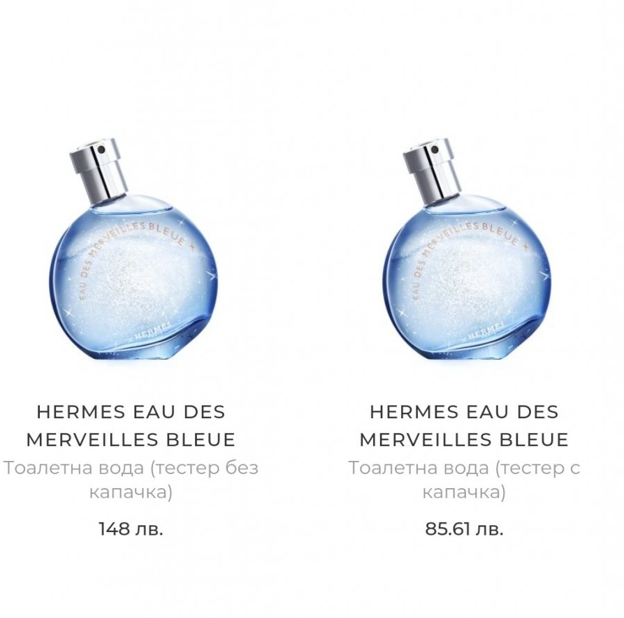 Поръчах Hermes Eau des Merveilles Bleue от Make up. 100 ml тестер с капачка 86 лв.