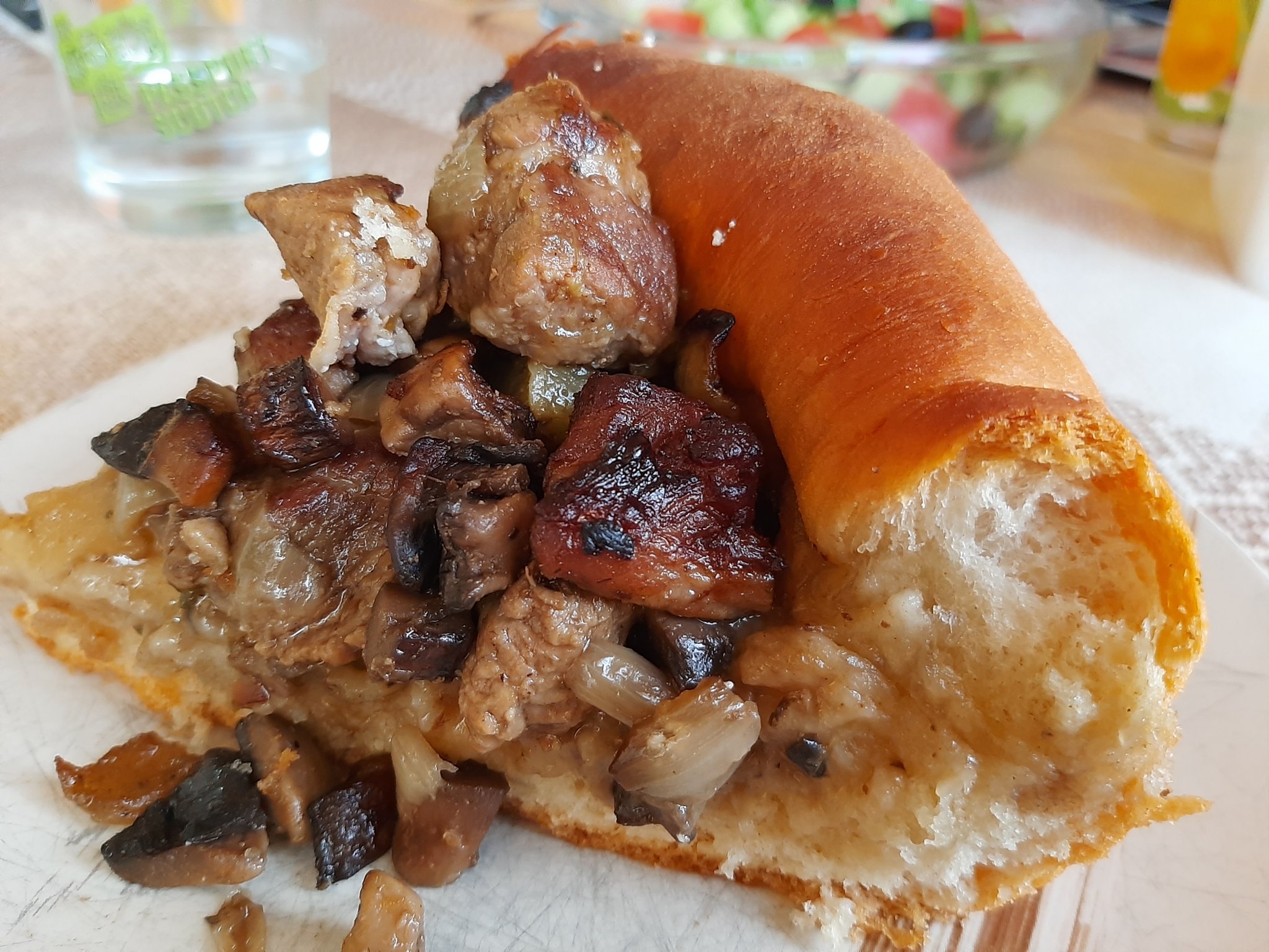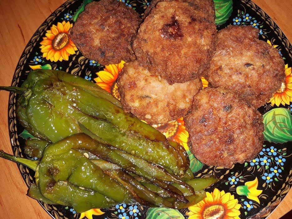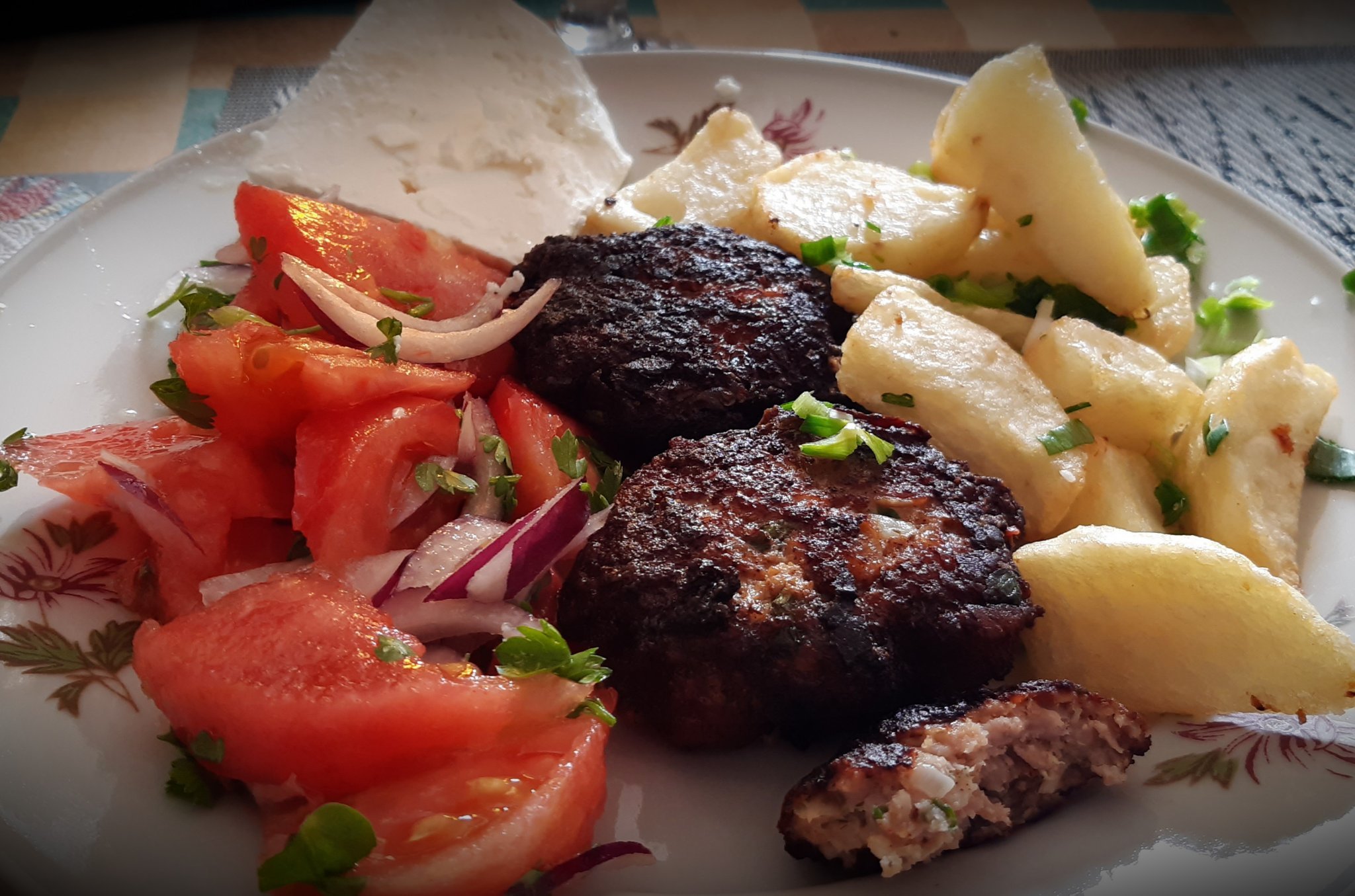 Обядът (в 5 часа)- кюфтета (само изглеждат препържени- не са), пресни картофки с чесън, салатка, сиренце... чудим се дали да вечеряме