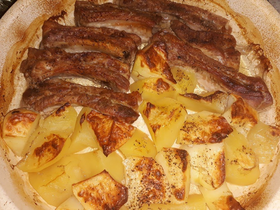 Ребърца и хляб с айрян и овесени трици, стана разкошен, много мекичък отвътре  с хрупкава коричка.