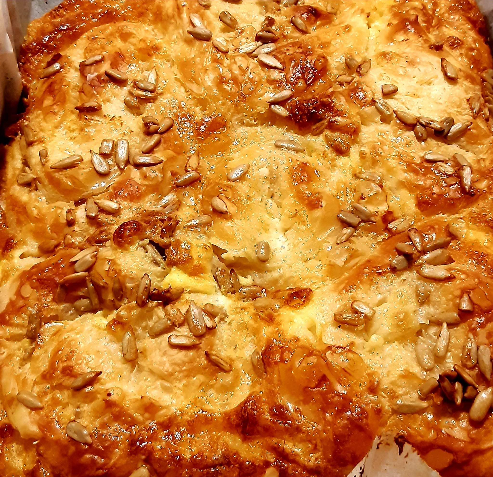 Баницата ми с гореща вода. Тази рецепта  си е напълно моя, от никъде не е копирана, пуснала съм я още през 2018 година, така че всеки който има претенции да ......да си прибере обратно претенцията. По късно ще кача  и рецептата.