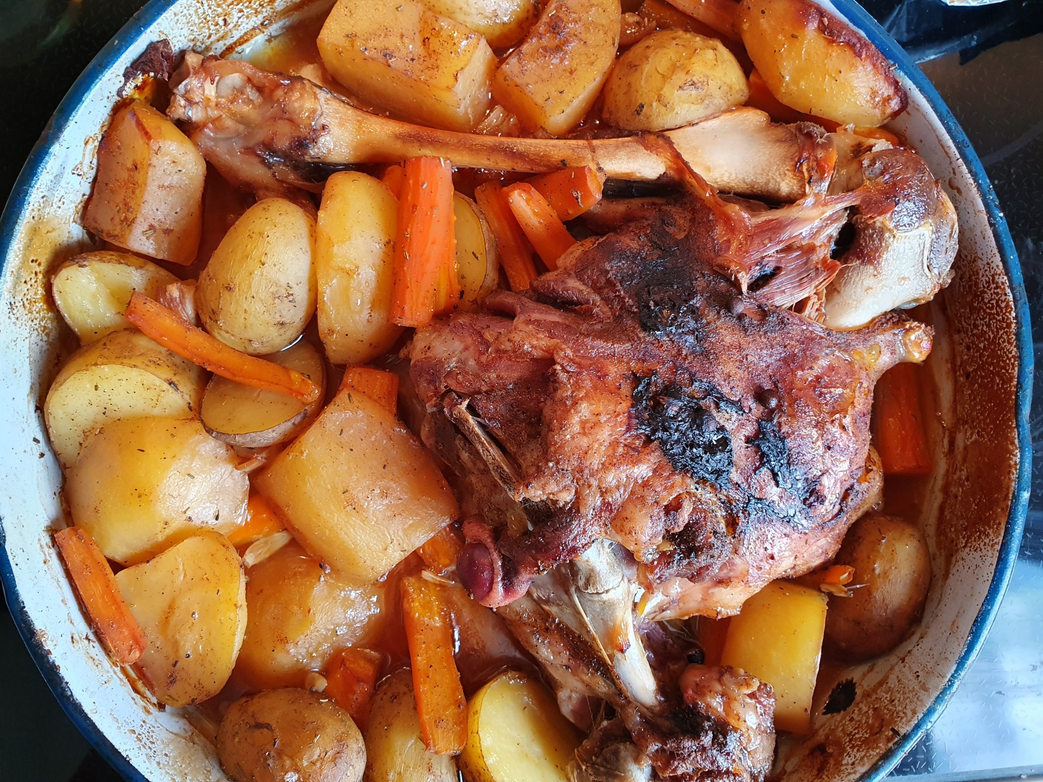 Агнешко с картофи и моркови (отопихме му  хубаво соса с топъл хляб)
