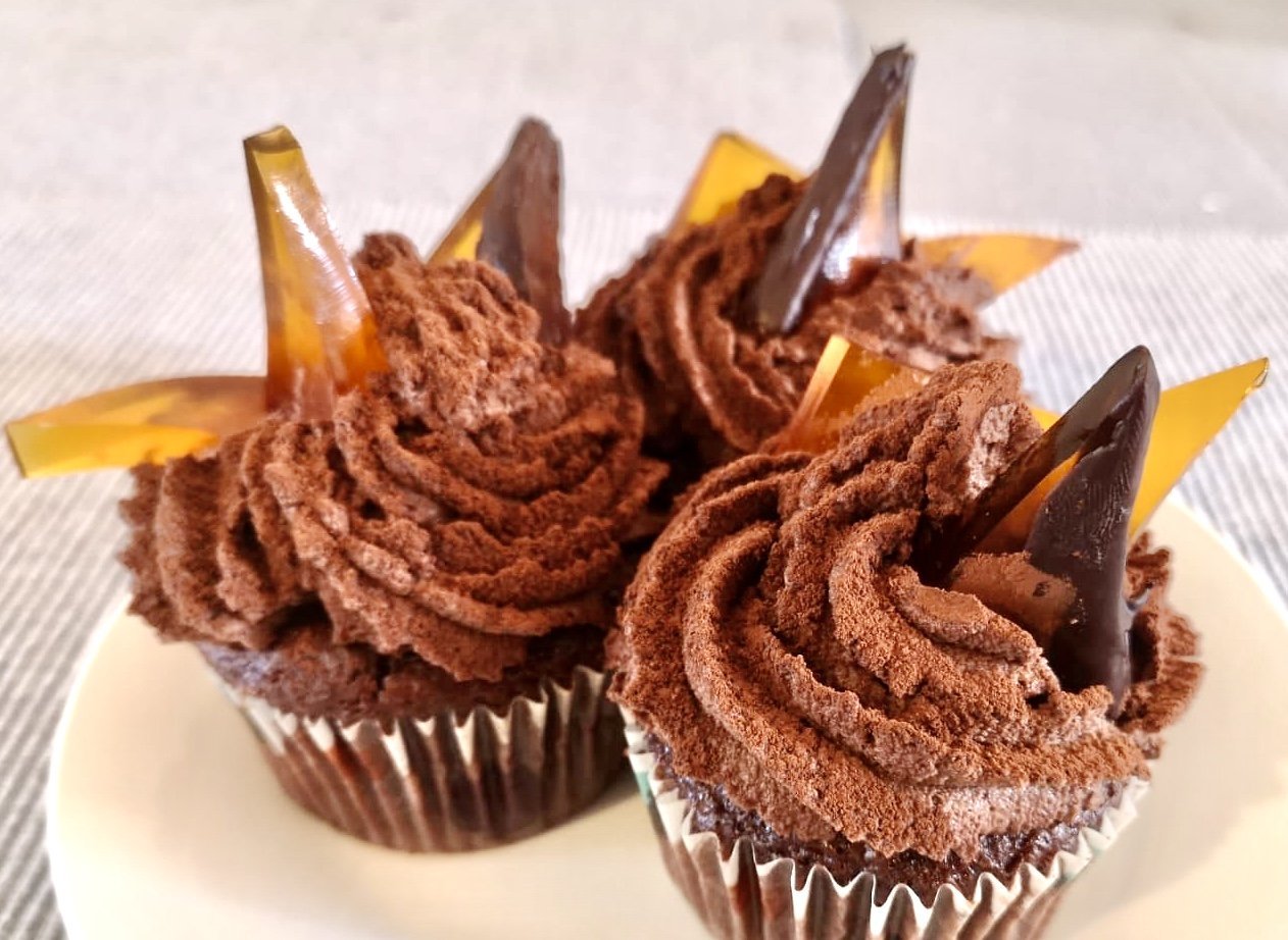 Тортата е шоколадовата на Ирина Купенска, измазана с шоколадов ганаш, за да мога да залепя шоколадовия чипс.