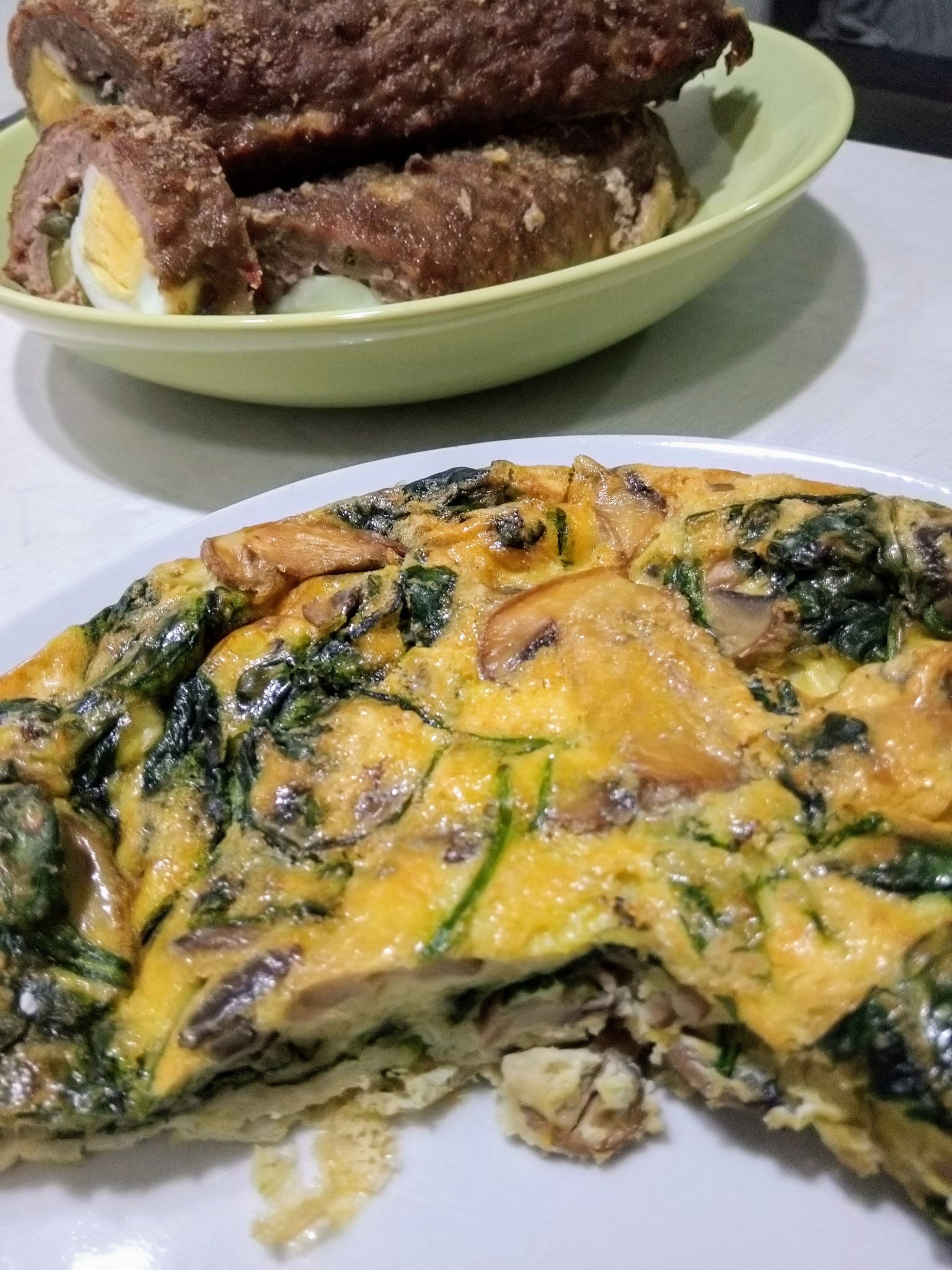 Фритата с бейби спанак и гъби, руло Стефани някъде на заден план Grinning