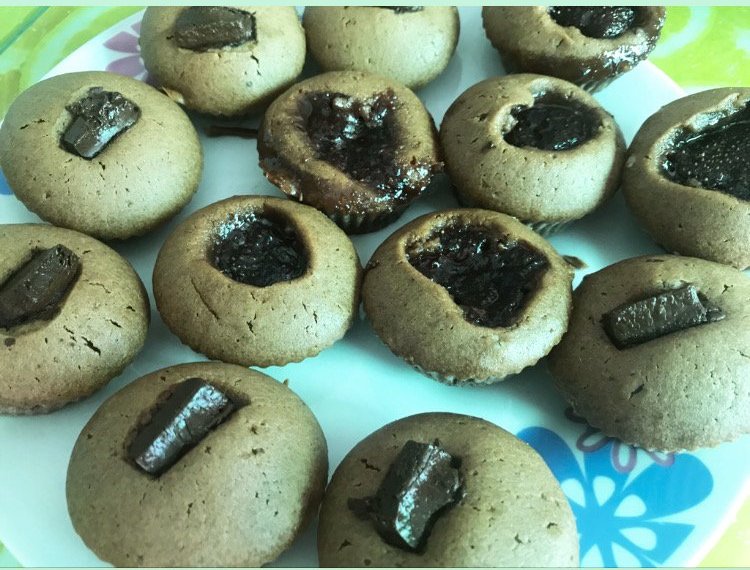 И мини кексчета. Едните с черен шоколад, другите с домашно сладко от ягоди