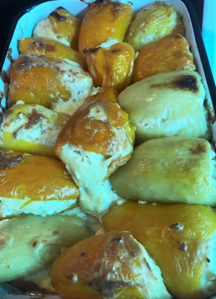 Чушки с яйца и сирене (и малко топено сирене)
