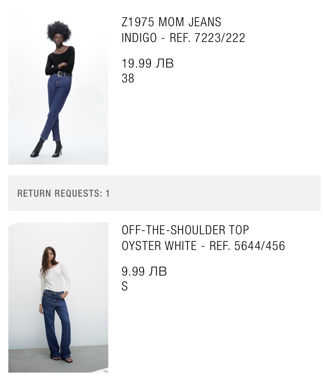 Дънките поръчах 38 които принципно са ми ок (между 36 и 38 съм) но материята беше нискокачествена - имала съм преди почти същия модел пак от зара и материята беше съвсем различна.