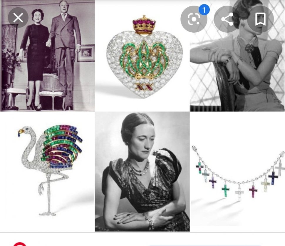 Уолис не е била красива, но може да е била интелигентна жена, с която да е имал какво да си каже, както се казва. А бижутата ѝ са много интересни, особено брошката под формата на сърце, а върху нея сякаш има нещо като инициали. 🤔