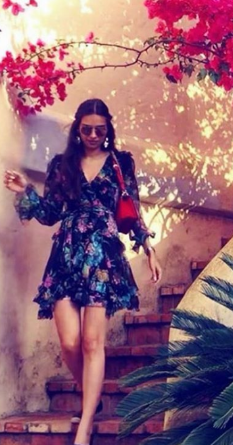 Дуда се фотнала пред няква кола и къща.