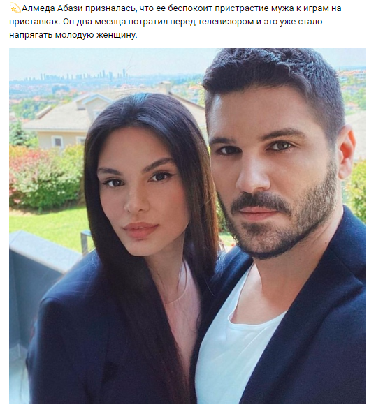 Алмеда Абази призна, че се притеснява от пристрастяването на съпруга си към игрите на конзолите. Той прекара два месеца пред телевизора и това вече дразни младата жена.
