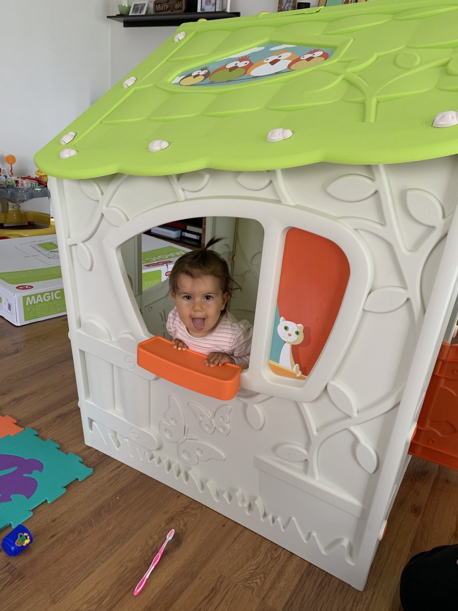 Относно рождения ден, нейният е на 29ти и аз много се бях наточила да си направим градинско парти с близките и малко приятели с техните дечица. Уви, май няма да стане. За подаръците, както каза някой в предишната тема, очаквам родата да ни заринат с боклуци и пластмасарии. Мъжът се сърди като му казвам да им каже да ни дават пари за детето, понеже основно неговите роднини ни подаряват такива тъпотии. Моите слушат и изпълняват поне. Ние й взехме ей такава къща за двора от Метро ( 2 за 1 са, та ако някой има интерес продавам втората )