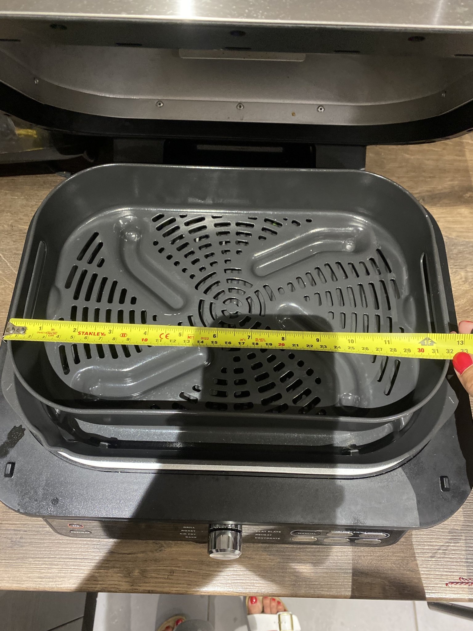 Dolce, малки са, така изглеждат големи на снимката. Дължината на базата/грил е към 35 см. Това е еър фрайър кошницата, а плочата беше в миялната. Ползваме я плочата за притопляне, защото става бързо и по-вкусно от микровълнова.