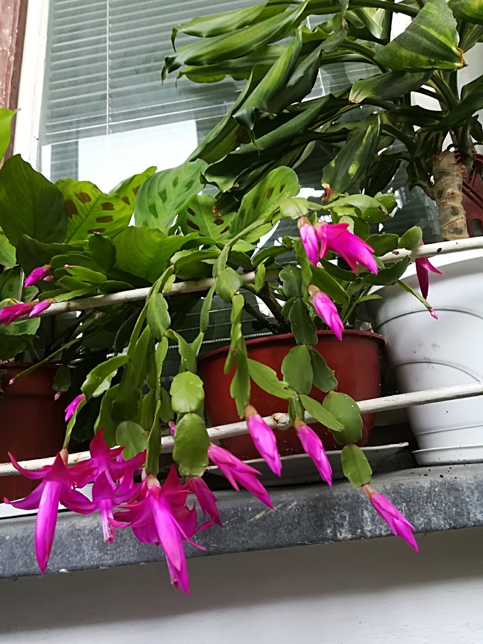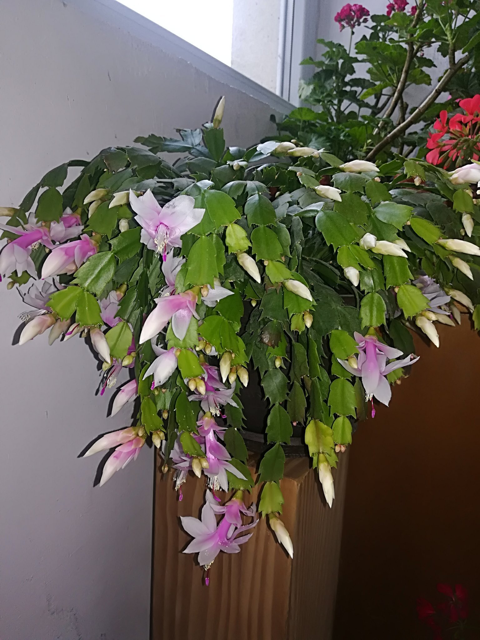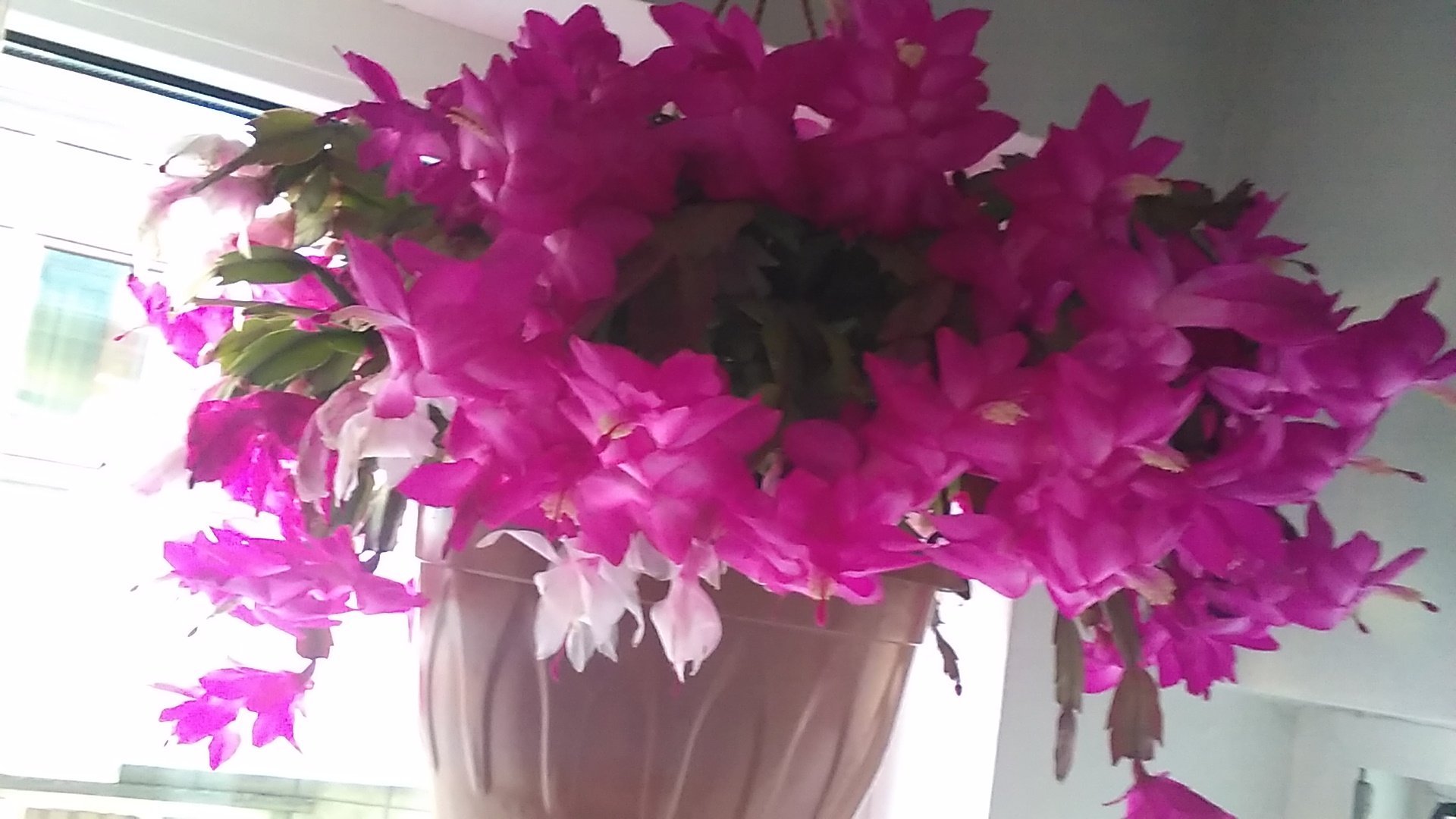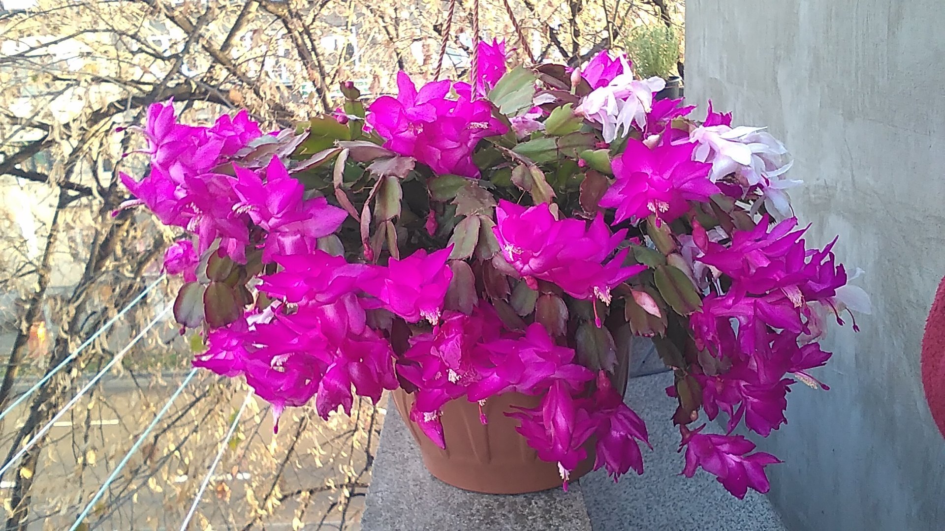 Здравейте! От няколко дни ви чета и си позволявам да покажа и моето коледниче. Преди две лета събрах във висяща саксия два вида - цикламено и бяло (не е снежно, леко розовее), като цикламеното е около 3/4 от получения обем. През лятото (всъщност от март до ноември или през всичкото възможно време) държа саксията на терасата, а зимата е вътре. Имам двете растения поне 2-3 години преди да ги събера в тази конфигурация. При разсаждането направих подобна и за майка ми. Преди не цъфтяха, а сега...