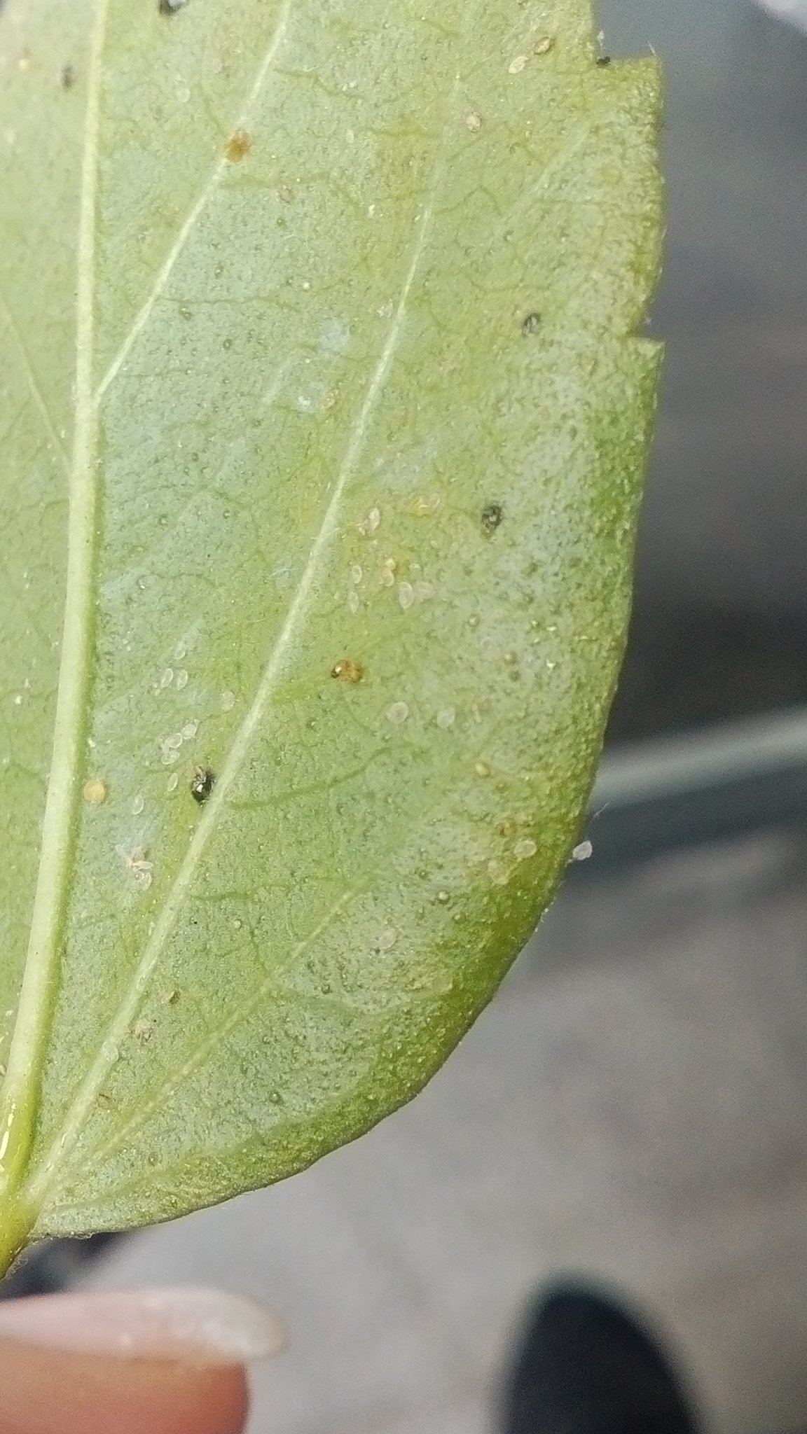аз идвам за съвет за китайска роза. Боря се с белокрилки вече от три седмици. Ползвам някакъв препарат закупен от интернет и той помага ама не до край. Обаче има и още нещо по листата което не мога да разпозная щитоносни въшки сигурно ще тръгнат и някакъв нов бонус вредители. Надявам се снимките да са достатъчно добри :