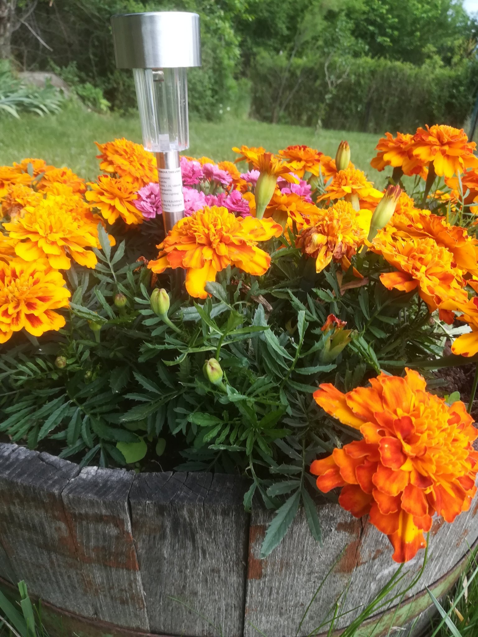 Аз днес се върнах от пазар със синя лобелия, целозия и циганче. Кучето ми счупи най-хубавия божур в градинката хем ме беше яд, хем горкия като ме погледна с един жален поглед, изобщо не си и помислих да му се карам. Вече е много стар милия, задните му крака отказаха и буквално се влачи, а ни е жал и не искаме да го приспим, поне засега, защото нищо не го боли. Здраве да е, долната част остана, пак ще тръгне, а и имам още един такъв. Само ми стана съвестно, че миналата седмица за двата счупени тагетиса нарочих кученцето на дъщерята. А той нашият, просто вече не може да върви и гледа да си свърши работата възможно най-близо, поне наторява градинката.