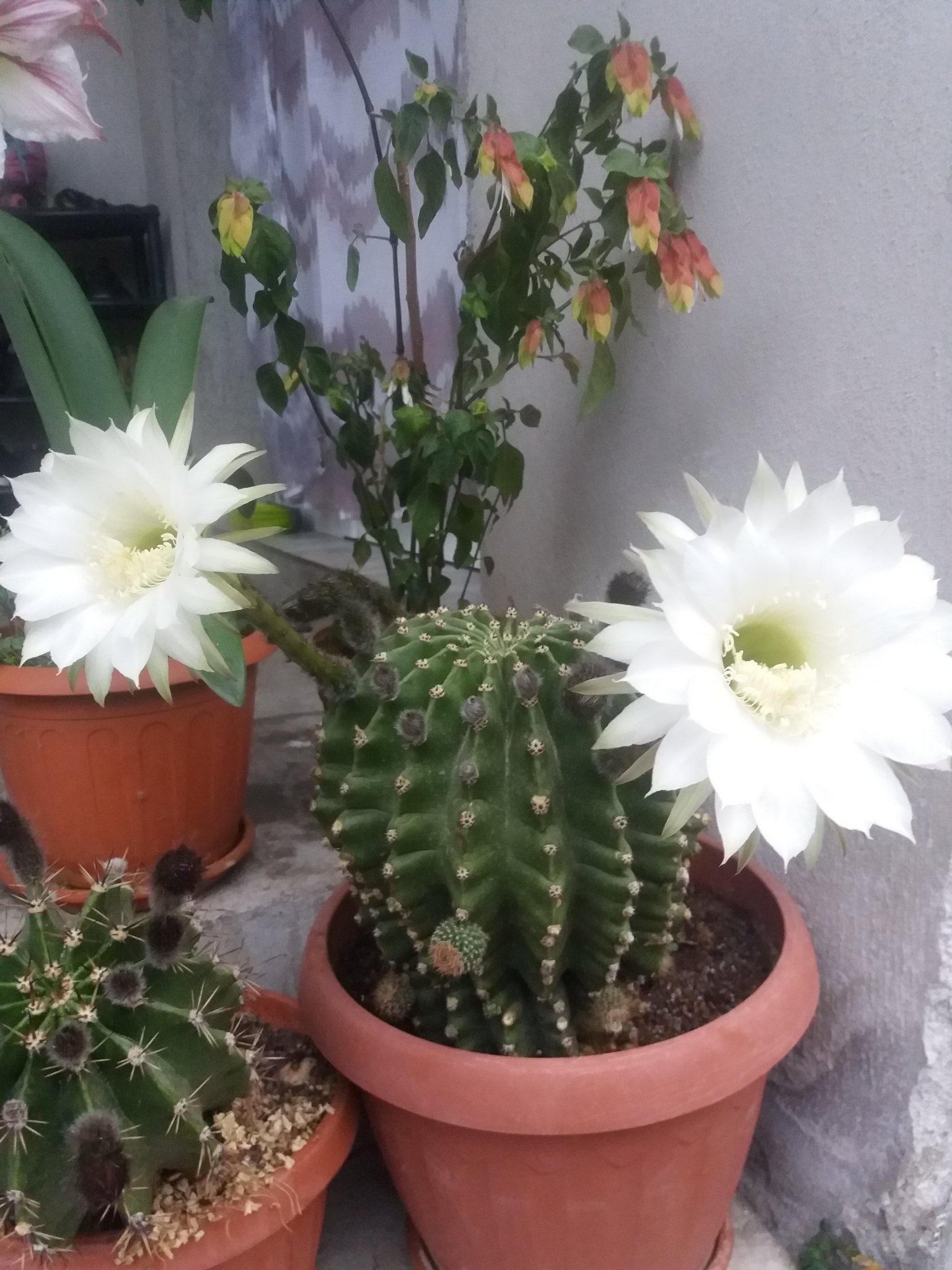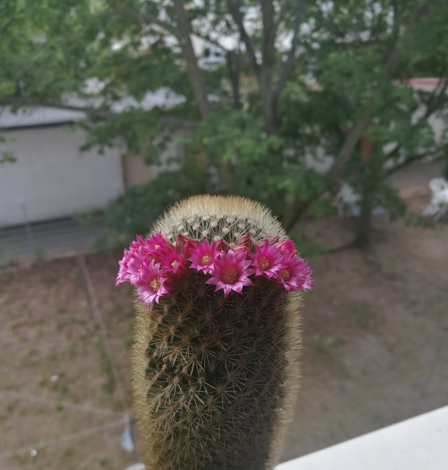 И мой кактус цъфна, живее си навън целогодишно. Пораснал е от миналата година от липсващите бодли до цвета.
