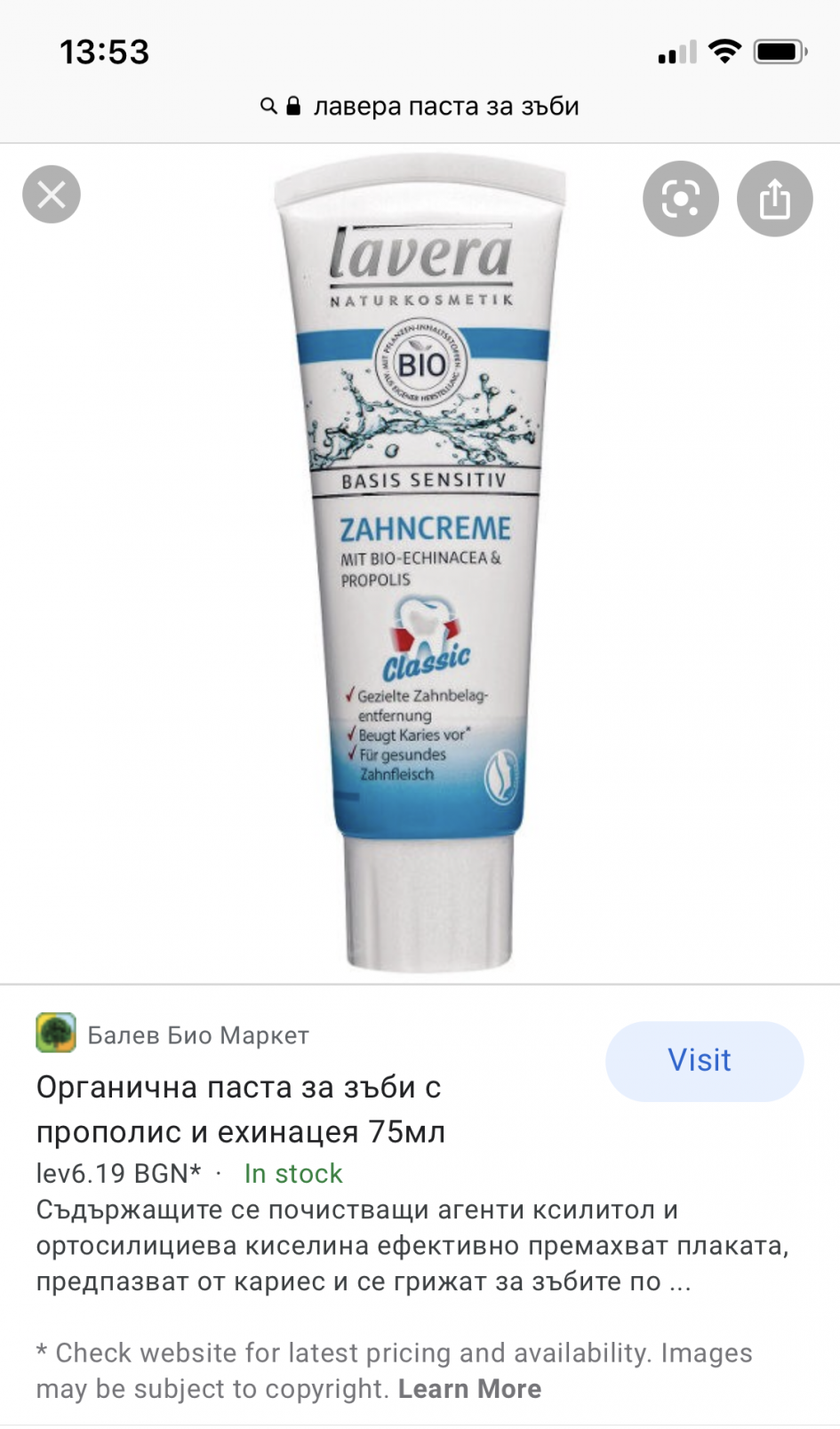 Здравейте, търся тази паста за зъби на Лавера? Преди ИП купих последно от DM, но сега не я откривам... някой да е виждал скоро в някоя дрогерия/магазин?