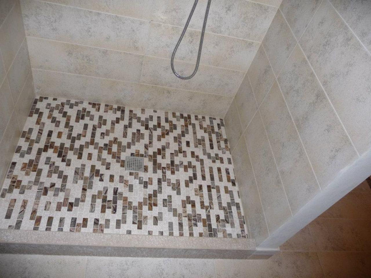 Това няма да стане, но можеш да сложиш праг от технически камък и вътре в него да разбиеш и сложиш някакви подходящи, но и контрастни плочки с нужния наклон. И тогава вече само вътре ще имаш наклон и ще си сложиш параван - статичен, с врата или какъвто искаш.