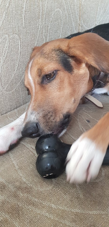 На Монито ѝ няма абсолютно нищо. Дерматоложка май май се оказа права, че си има дерматит. А съм чела, че лятото се подобрява, зимата се влошава. Ето, времето се стопли и няма следа. Всичко яде, постоянно е с Еро, в треви ходи, кожата ѝ е добре.
